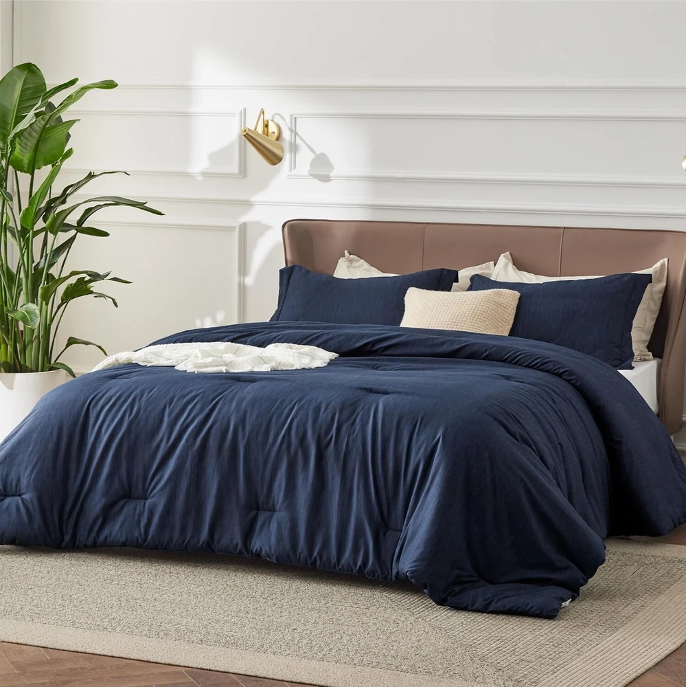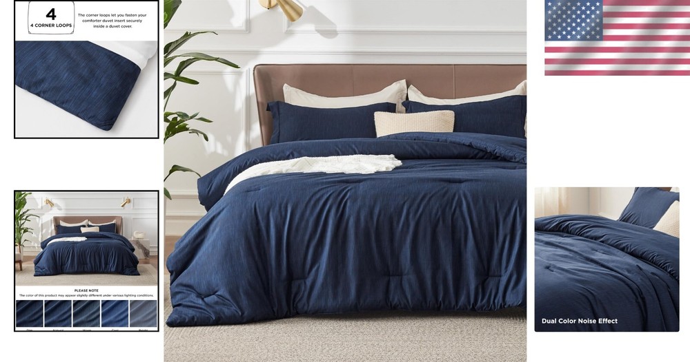 Modern Navy Cationic Dyed Full Comforter & Shams - Lightweight & Cozy < class="slides"> ‹ › ‹ › ‹ › ‹ › ‹ › ‹ › ‹ › ‹ › ‹ › Modern Navy Cationic Dyed Full Comforter & Shams Lightweight & Cozy Features: Extra Soft: The unique brushing technique results in remarkable softness, cradling you in comfort against your skin. Microfiber Filling: Enjoy cloud-like comfort -round, making it perfect for every season. Subtle Texture & Simple Style: The heathered finish, achieved through cationic dyeing, adds a gentle, textured look to your bedroom decor. Versatile Usage: Four corner loops allow it to function as a luxurious all-season comforter or as a cozy duvet insert. Easy Maintenance: Effortlessly machine wash in cold water on a gentle cycle for a like-new restoration. What You Can Get: 1 Comforter - 82" x 86" 2 Pillow Shams - 20" x 26" + 2" Why Choose Our Full Comforter Set? Elevate your bedroom with the embrace of our Modern Navy Cationic Dyed Full Comforter & Shams. Crafted for those who seek both luxury and simplicity, this bedding set combines extraordinary softness with an inviting aesthetic. Perfect for every season, it transforms your space into a sanctuary of warmth and style. Indulge in restful nights and stylish decor—order your perfect comforter set now! Shipping Free & Fast Shipping - We offer free shipping to most of the USA with a normal delivery time of 3-7 days. However, due to the current situation, additional delivery time (up to 3 weeks) may be required for some items. Alternative Carriers - We may use alternative carriers (e.g. USPS, FedEx, UPS, etc.) to ensure your package arrives safely and on time. Due to the use of multiple carriers, we are unable to provide a tracking number automatically. Handling Time - Orders are processed and shipped within 1-2 business days of receiving cleared payment. Shipping Restrictions - Shipping to Alaska, Hawaii, Puerto Rico, Guam, and other US territories may incur shipping charges or delivery restrictions. Please contact us before ordering, or your order can be refunded/cancelled. State Restrictions - There may be restrictions based on your state of purchase. For example, certain items may not be shipped to California due to state regulations. Contact for Tracking Updates - If you require tracking updates or have any concerns about the delivery of your order, please feel free to contact us, and we will be happy to assist you. Return 30-Day Hassle-Free Returns - We want you to be completely satisfied with your purchase. If you are not, you can return the item within 30 days of receiving it for a full refund or exchange. Easy Return Process - To start a return, simply contact us and we will provide you with a prepaid return shipping label and detailed instructions. Restocking Fee - There are no restocking fees for returns. However, the buyer is responsible for return shipping costs if the return is not due to a seller's error. Refund Processing Time - Refunds will be processed within 5 business days of receiving the returned item in its condition. Payment We accept all major credit cards, PayPal, and Apple Pay for your convenience. Your payment information is secure and encrypted to ensure a safe and seamless transaction. Please complete your payment within 3 days of purchase to avoid any delays in shipping. Feedback Your feedback is extremely important to us. We strive to provide the best products and customer service possible. If you are satisfied with your purchase, please take a moment to leave us a positive review. If you have any concerns or issues with your order, please contact us before leaving negative feedback. We are committed to resolving any problems and ensuring your satisfaction. Contact Us If you have any questions or concerns, please feel free to out to our customer support team. You can contact us through the eBay messaging system. We are available Monday to Friday, 9:00 am to 5:00 pm EST, and we will do our best to respond to your inquiry within 24 hours. Buy it now and enjoy a pleasant shopping experience! Model: Full Comforter Set Set Includes: Comforter,Pillow Sham Material: Polyester,100% Polyester Features: Easy Care,Extra Soft,Subtle Texture,Simple Style,Easy to Maintain Theme: Modern Care Instructions: Do Not Bleach,Machine Wash,Machine Wash Cold Department: Unisex Baby & Toddler,Kids,Teens,Adults Room: Bedroom Size: Full Type: Comforter Set Color: Navy Fill Material: Polyester Pattern: Solid Number of Items in Set: 3 Insulation: All Seasons Style: Modern Season: All Closure Type: No Closure Thread Count: 200 or Less GSM (Grams per Square Meter): 150 to 300