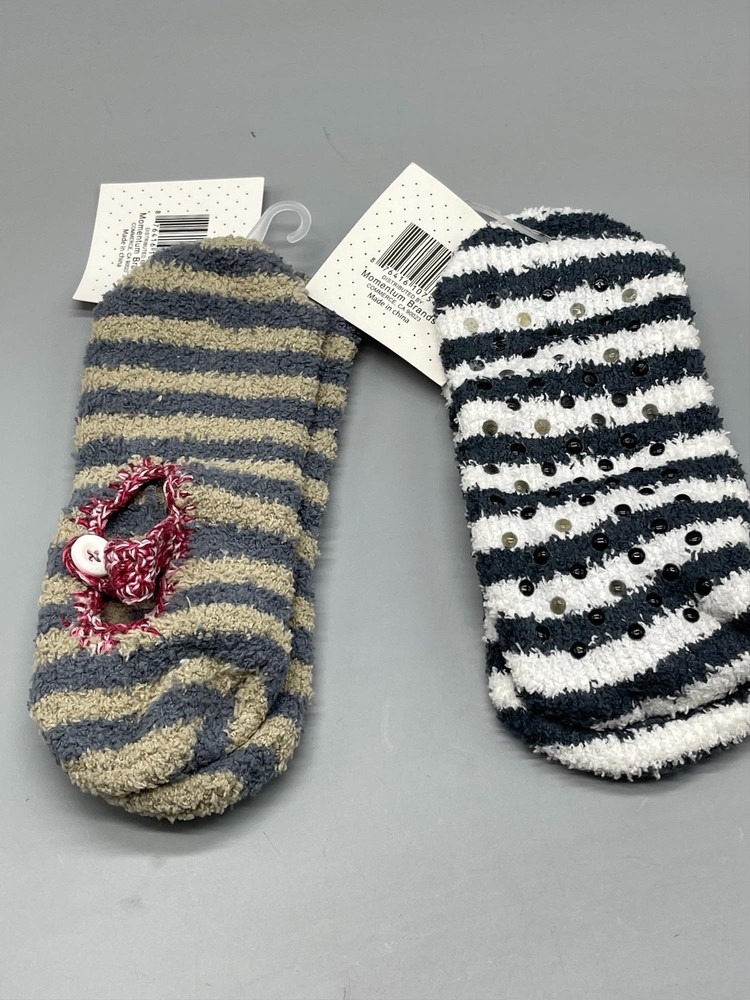 Stay warm and comfortable with Molly Jacobs cozy slippers, featuring gripper soles for added safety. Perfect for lounging at home, these slippers come in a convenient two-pair pack in black and white colors. Ideal for everyday wear. • Cozy and comfortable • Gripper soles for safety • Includes two pairs • Black and white colors • Perfect for lounging • New condition Size: Womens S Condition: New With Tags new with label see photos