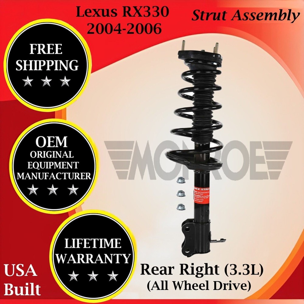 -::Monroe Genuine OEM Specs 2004 2005 2006 Lexus RX330 3.3L Rear Right Strut Assembly For Base Model -:: AWD (All Wheel Drive) -:: Exc. Air Suspension -::Warranty Life Time -::Note:: Express/ Overnight/ Expedite Shipping Available on Special Demand. -::share VIN for best fitment -::24x7 Support Available -::Do not return without instruction otherwise return will not be accepted because return inventory location may be different. -::Shipping cost is applicable for "Alaska, Guam, MP, Samoa Island, Iceland, Hawaii, Puerto Rico & Virgin Island Etc." Shipping is free only in Main land 47 states of United States. Part Number :: 1331612R, 172215, G57153, MSS050416 -99% of orders shipped within 24 hours -We ship with FedEx Ground or USPS -Free Shipping with all orders -Delivery is within 1-5 Business Days. (Except for Smaller Items that Ships Through USPS which may take longer) -Lowest price on brand new, in-the-box Auto parts -All Parts Are Genuine General Policies: If you have a question about a part you should contact us before buying. We are proud to offer you the best price and fastest service for all your aftermarket parts needs. In order to keep our prices low, we have the following purchasing policies. Returns: We're here for you! We are proud to offer quality service and we want your transaction to go perfectly. Questions: We only warranty cost of parts. Any installation or other fees are non-refundable. If the buyer needs to cancel or return the item, the buyer must begin the transaction in My eBay. Note: Do not return without informing us, Always Ask return address of return shipping label (Because return inventory might be different) Return Policy: Customer must contact us within 30 days of receiving shipment for approval of any return or exchange. Returns or exchanges will be subject to a 10% restocking fee of the original item purchased plus cost of return shipping and replacement shipping. Exchanges due to shipping errors from our side will not be subject to a restocking fee or shipping charges. Spring Shock Driver Passenger, Shock Coil Set, Strut, Strut Coil Spring Assembly, Rear Strut Complete Assembly, Quick Strut Assembly, Complete Struts, 2004 2005 2006 Lexus RX330 3.3L Rear Right Strut, 2004 2005 2006 Lexus RX330 3.3L Rear Passenger Side Strut, 2004 2005 2006 Lexus RX330 3.3L Rear shock with coil spring, 2004 2005 2006 Lexus RX330 3.3L Rear Passenger Quick strut, 2004 2005 2006 Lexus RX330 3.3L Rear Quick Loaded Strut, 2004 2005 2006 Lexus RX330 Rear Shocks, 2004 2005 2006 Lexus RX330 Rear Struts, 2004 2005 2006 Lexus RX330 Rear Quick Struts, 2004 2005 2006 Lexus RX330 Rear Loaded Struts, Lexus RX330 Rear Shocks, Lexus RX330 Rear Struts, Lexus RX330 Rear Right strut, Lexus RX330 Rear Passenger side strut, Lexus RX330 Rear shock with coil spring, Lexus RX330 Rear Passenger Quick strut, Lexus RX330 Rear Quick Loaded Strut, Lexus RX330 Struts, Lexus RX330 Loaded Struts, Lexus RX330 Quick Struts, Lexus RX330 Rear Strut Assembly, RX330 Struts, RX330 Right Strut, Struts and Shocks, RX330 Rear Right Strut