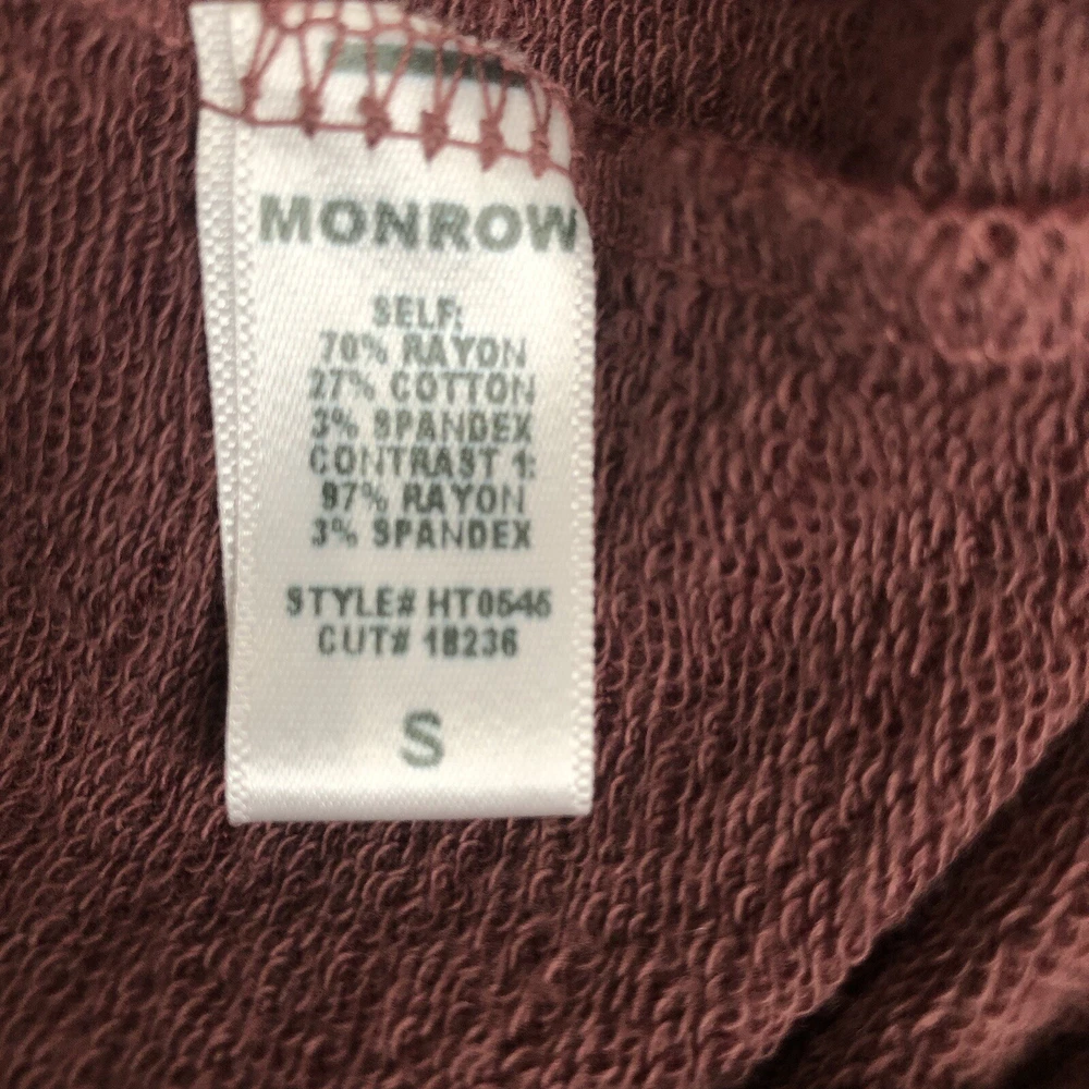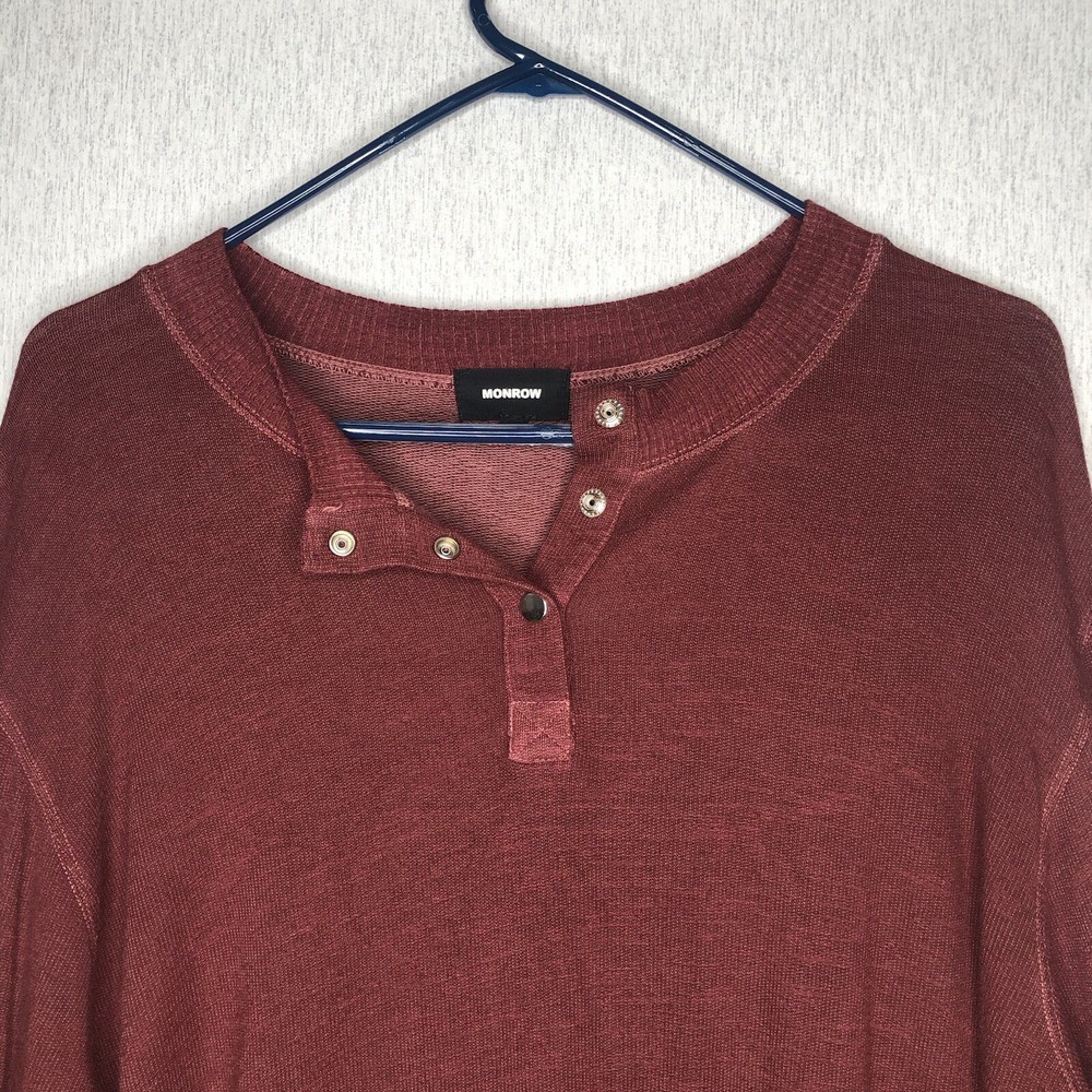 In good pre-owned condition. Please see photos. Approximate measurements: Armpit to armpit: 21" Length: 25" Made from Monrow's Supersoft fabric: 27% cotton, 70% rayon, 3% spandex. Machine wash cold, tumble dry low. Snap button henley sweatshirt. Ribbed neckline and cuffs. Soft, lightweight, athleisure. Smoke and pet free home. Please contact us prior to making the purchase if you would like additional information. Thank you for stopping by.