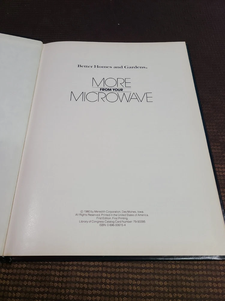 More From Your Microwave (Better Homes and Gardens 1980 Hardcover). This book comes from a clean and smoke free home. There are no markings inside but there is wear and tear to the covers and spine-please review the pictures carefully. Shipped with USPS Media Mail. Location B14