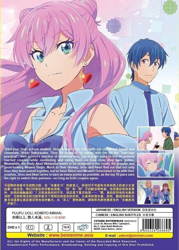 Get a FREE GIFT with every purchase Fuufu Ijou, Koibito Miman. ( More Than a Married Couple, But Not Lovers ) 夫婦以上、恋人未満 Complete TV Series Volume 1-12 End *NEW! English Audio Dubbed Version Optional: Japanese with English Subtitle ALL Region / Region Free Condition: Authentic Brand NEW,Original Factory Sealed. Episode: Vol. 1-12 End N o. of Discs: DVD x 1pc Region Code: ALL Region, Region FREE "0" ( Able to play on DVD Players throughout the World ) Audio Language: English / Japanese Subtitles: English / Chinese Shipping and Packaging: Thank you for your interest in our product! We are pleased to offer free international shipping for this item. Please note that international delivery typically takes 2-3 weeks. At The Anime Zone, we prioritize the safe delivery of your orders. Our bubble wrapped packages provide excellent protection for fragile items. Each item is meticulously wrapped in multiple layers of high-quality bubble wrap to absorb shocks during shipping. The package is then placed in a sturdy shipping box for added reinforcement. We work with trusted shipping partners experienced in handling delicate packages. You can track your shipment using the provided tracking number. If you encounter any issues, our dedicated customer support team is here to assist you. Trust The Anime Zone for secure and worry-free shipping.