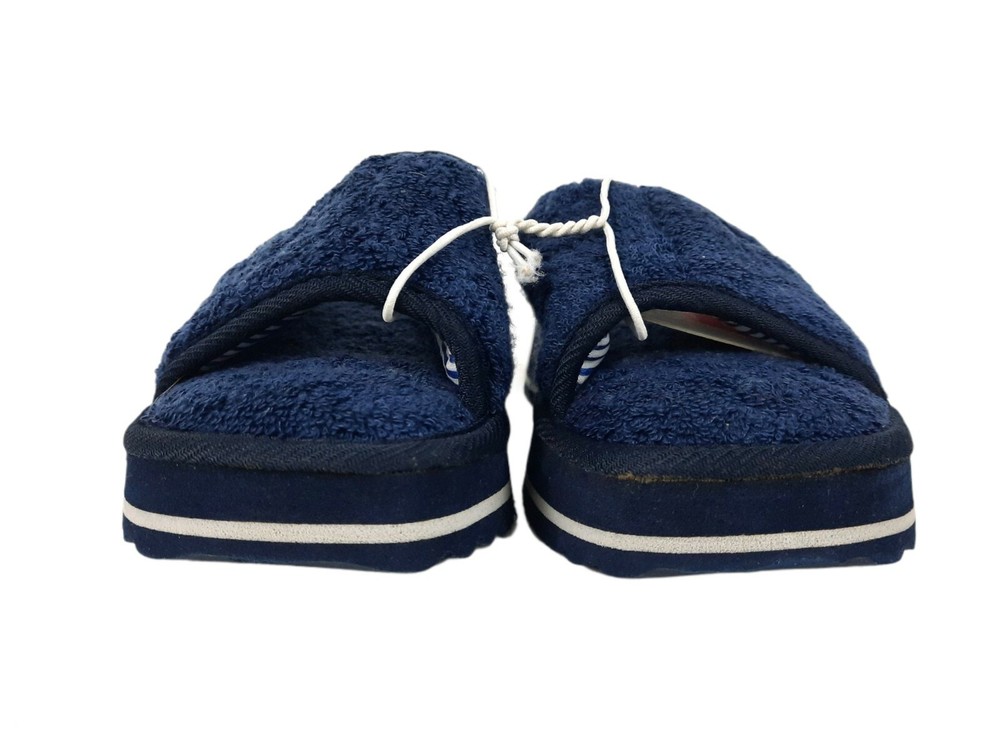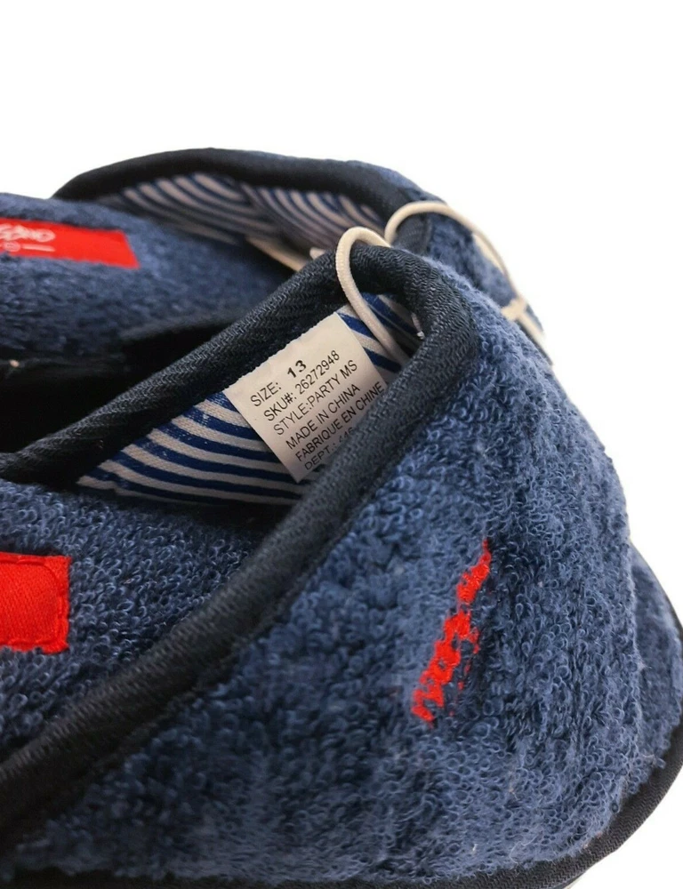 Mossimo Slippers Girls 13 Navy Blue Terry Slides Shoes Pool Bath Beach Cozy Y2K Cozy girls navy blue slides by Mossimo - great for around the pool, at the beach or after bath. Features all around terry fabric to keep her feet warm and comfy. Brand: Mossimo Color: Navy Blue Material: Cotton Terry Girls Size: 13 Cushioned insole Embroidered logo Slip-on Lightweight Foam rubber outsole Insole measures approx. 7.75 in.