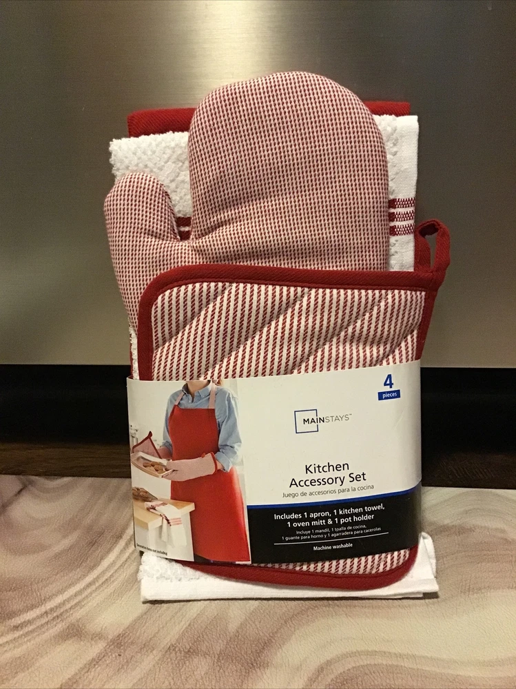 Mainstays Apron, Oven Mitt, Potholder, Kitchen Towel Set of 4, Teal, 4 Pieces. Condition is "New with tags". Shipped with USPS First Class.