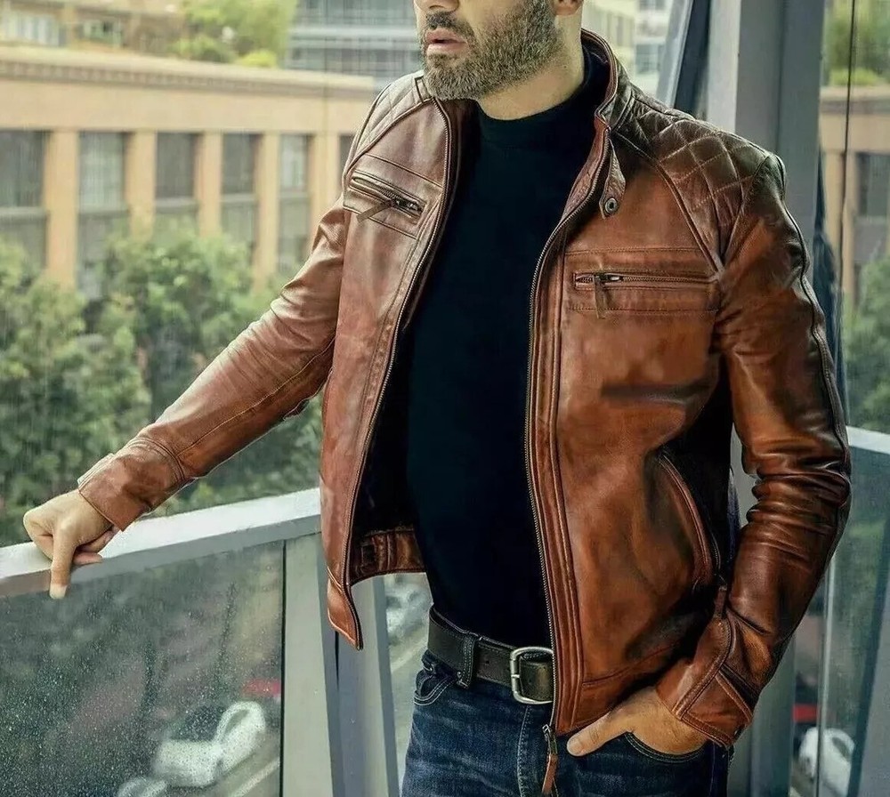 Men’s Motorcycle Cafe Racer Vintage Biker Brown Distressed Real Leather Jacket Embrace vintage style with this Men’s Motorcycle Cafe Racer Biker Jacket, made from high-quality distressed real leather. The brown color gives it a rugged, worn-in look, perfect for those who love the classic cafe racer aesthetic. This jacket combines style and functionality, providing both comfort and durability for motorcycle enthusiasts or anyone looking to add a touch of timeless cool to their wardrobe. Jacket Features: Mens High Quality Real Leather Jacket Motorcycle Biker Leather Jacket Best Quality Stitching ThroughOut Bomber Motorcycle Biker Leather Jacket Multiple Outer and Inner Pockets Including Mobile Pocket Long Lasting Durable Leather Jacket Original YKK Zippers Brand New With Tag Key Features: Crafted from premium distressed real leather for a vintage, rugged look. Classic cafe racer design with a slim fit for a stylish silhouette. Durable construction ideal for motorcycle riding or casual wear. Rich brown color enhances the jacket’s vintage appeal. Why Choose Us? Premium quality materials for lasting durability and style. Free minor alterations to ensure a perfect fit. Fast and reliable shipping. Excellent customer service with prompt responses. Frequently Asking The Question ( FAQS ) : How to clean leather jacket ? Mix a solution of warm water and dish soap. You can also make a cleaning solution of one part vinegar to one part water. Dip a soft cloth into the solution, wring it out and wipe the jacket. How to get rid of leather jacket wrinkles ? To remove wrinkles from leather jackets, try hanging them up to allow the leather to relax and smooth out naturally. Alternatively, you can use a steam iron on a low setting to gently remove wrinkles, or use a hairdryer on a cool setting to carefully heat the leather and restore its smooth texture. How iron leather jacket ? To carefully iron a leather jacket, start by turning the heat down to the coolest setting on your iron, then arrange the jacket on the ironing board and cover it with a pillowcase or clean cotton towel to protect the leather. Next, iron the jacket through the extra layer of fabric, using gentle strokes to smooth out any wrinkles or creases. Where to store leather jacket ? If you don't have space to properly hang your jacket, you can place it in a wooden (preferably cedar) trunk or even a suitcase. Can leather jacket get wet ? Because of its permeable nature, when exposed to excessive amounts of water, leather will get wet, and if not dried properly, it can become stiff, or even rot. Why buy from us? High-quality materials and craftsmanship Competitive pricing Fast shipping and excellent customer service 100% Satisfaction Guaranteed