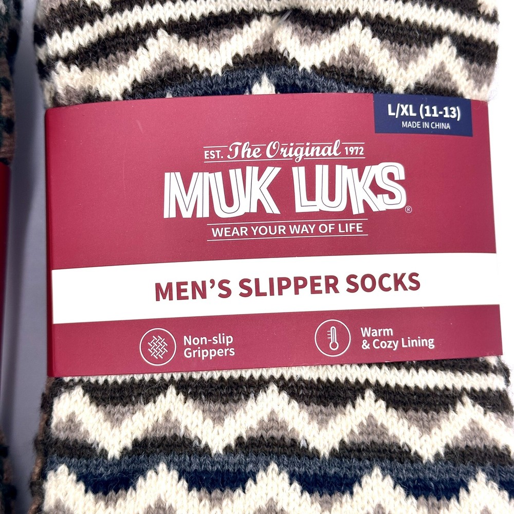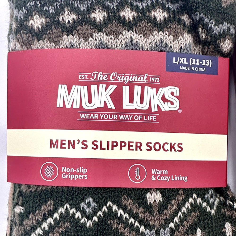 Muk Luks Men’s Warm Cozy Slipper Socks Size L/XL 11-13 (2 Pairs) Non-Slip Grippers Brand: Muk Luks Size: L/XL (Fits Men’s 11-13) Condition: New with Tags (NWT) Style: Warm Cozy Slipper Socks Stay cozy and comfortable with these Muk Luks Men’s Warm Cozy Slipper Socks . Designed with warmth in mind, these slipper socks feature a soft and fuzzy interior, while the non-slip grippers on the soles ensure you stay safe and secure as you relax. The pack includes two pairs, so you can enjoy extra comfort and style. Key Features: Warm and Cozy: Soft, plush material to keep your feet warm and comfortable. Non-Slip Grippers: Provides secure footing on slippery floors. Two Pairs: Includes two pairs for alternating wear. Perfect for Relaxing: Ideal for lounging at home, keeping your feet warm during cold days. What You’ll Receive: The exact item pictured. We provide multiple photos to show all angles and details. Anything not shown in the photos or mentioned in the description is not included. Shipping: Shipped daily (excluding weekends and holidays). Please Note: Colors may vary slightly due to lighting. All sales are final—please ask questions before purchasing. Thank you for shopping with us! We appreciate your business!