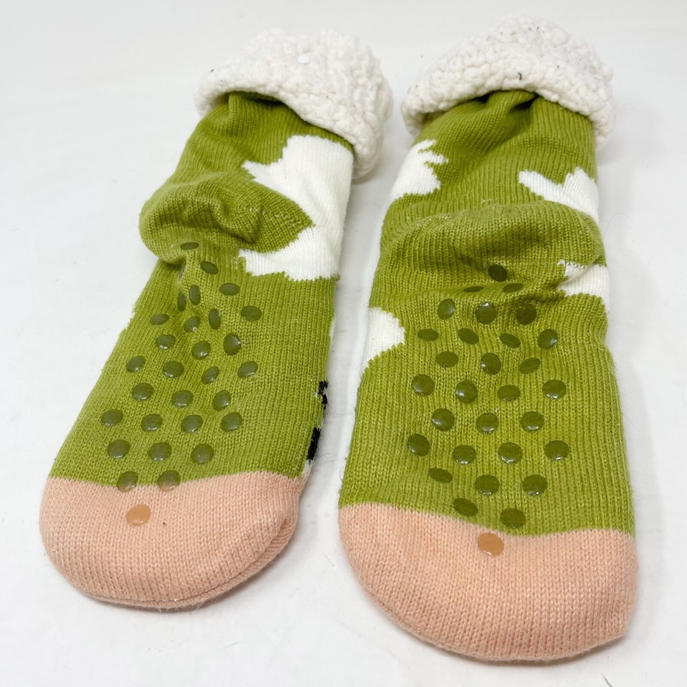 Multicolor COW Knit Green Pink Ivory Bootie Slippers Faux Shearling Lining OS. Good pre-owned condition. Gentle signs of wear. No stains or holes. #F13 [SPM]...