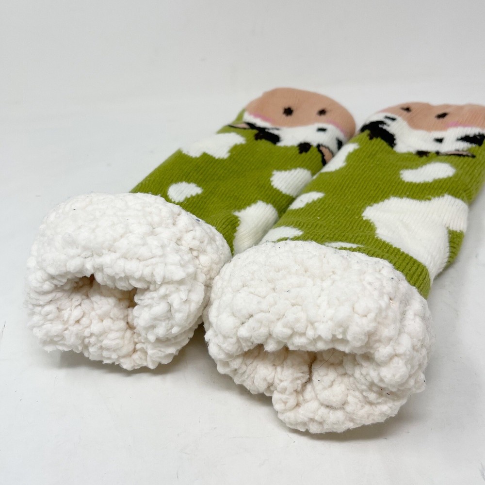 Multicolor COW Knit Green Pink Ivory Bootie Slippers Faux Shearling Lining OS. Good pre-owned condition. Gentle signs of wear. No stains or holes. #F13 [SPM]
