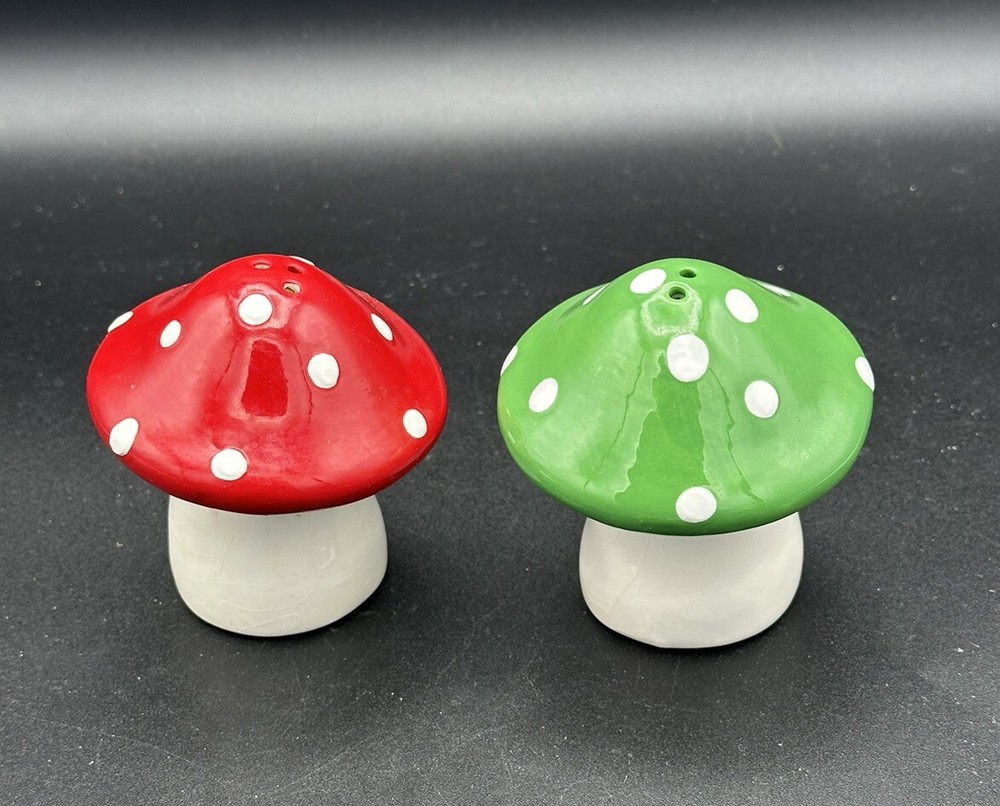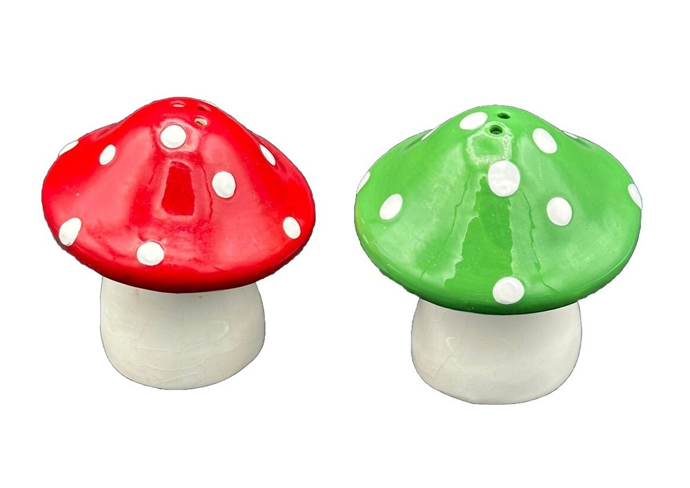 Add some whimsy to your kitchen with this adorable Design Imports DII Polka Dot Mushroom Toadstool Salt & Pepper Shaker Set. Featuring a fun mushroom theme with green, red, and white polka dots, these small ceramic shakers are perfect for adding a pop of color to your dining table. The set includes a pepper shaker and a salt shaker, both of which are hand wash only and made in China. Bring a touch of nature to your home with this delightful shaker set!