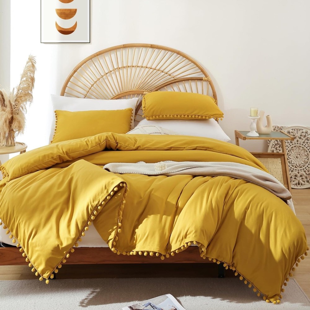 Mustard Yellow Full Comforter and Pillow Shams - Cozy, Machine Washable Bedding ‹ › ‹ › ‹ › ‹ › ‹ › ‹ › ‹ › ‹ › ‹ › Mustard Yellow Full Comforter and Pillow Shams Transform your bedroom into a haven of coziness with our exquisite Mustard Yellow Full Comforter Set. Perfectly designed for those who cherish comfort and aesthetics, this bedding ensemble promises both style and substance. Set Contains: 1 Comforter (79 inches x 90 inches) 2 Pillowcases (20 inches x 26 inches) Features: Soft & Comfortable on Skin: Crafted from microfiber with a unique stone-washed process, this comforter is luxuriously soft against the skin, providing ultimate comfort throughout the . Pom Fringe Design: The intricate ball tassels adorning the comforter and pillowcases not only enhance its aesthetic appeal but also add durability—ensuring they remain securely attached. Safe Material: Our comforter is Standard 100 by OEKO-TEX certified, guaranteeing that it meets the highest safety criteria for harmful chemicals, ensuring a safe and cozy night's sleep for you and your loved ones. Wash Care: Maintaining this bedding set is effortless; simply machine wash it in cold water on a gentle cycle to restore its like-new freshness. Benefits: Creates a cozy retreat with its cloud-like filling for -round comfort. Stylishly designed to complement various room styles with its vibrant mustard yellow hue. Durable construction ensures lasting beauty and functionality. Machine washable for convenience and easy upkeep. Why Choose Our Mustard Yellow Comforter Set? Indulge in the luxury of softness and style with our Mustard Yellow Full Comforter and Pillow Shams. Its inviting hue, coupled with the plush comfort of microfiber, transforms your sleeping space into a sanctuary of relaxation. With a design that marries functionality and aesthetic elegance, this bedding set is your perfect companion for restful nights and revitalized mornings. Elevate your bedroom decor and embrace ultimate comfort—order your Mustard Yellow Comforter Set today! Shipping Free & Fast Shipping - We offer free shipping to most of the USA with a normal delivery time of 3-7 days. However, due to the current situation, additional delivery time (up to 3 weeks) may be required for some items. Alternative Carriers - We may use alternative carriers (e.g. USPS, FedEx, UPS, etc.) to ensure your package arrives safely and on time. Due to the use of multiple carriers, we are unable to provide a tracking number automatically. Handling Time - Orders are processed and shipped within 1-2 business days of receiving cleared payment. Shipping Restrictions - Shipping to Alaska, Hawaii, Puerto Rico, Guam, and other US territories may incur shipping charges or delivery restrictions. Please contact us before ordering, or your order can be refunded/cancelled. State Restrictions - There may be restrictions based on your state of purchase. For example, certain items may not be shipped to California due to state regulations. Contact for Tracking Updates - If you require tracking updates or have any concerns about the delivery of your order, please feel free to contact us, and we will be happy to assist you. Return 30-Day Hassle-Free Returns - We want you to be completely satisfied with your purchase. If you are not, you can return the item within 30 days of receiving it for a full refund or exchange. Easy Return Process - To start a return, simply contact us and we will provide you with a prepaid return shipping label and detailed instructions. Restocking Fee - There are no restocking fees for returns. However, the buyer is responsible for return shipping costs if the return is not due to a seller's error. Refund Processing Time - Refunds will be processed within 5 business days of receiving the returned item in its condition. Payment We accept all major credit cards, PayPal, and Apple Pay for your convenience. Your payment information is secure and encrypted to ensure a safe and seamless transaction. Please complete your payment within 3 days of purchase to avoid any delays in shipping. Feedback Your feedback is extremely important to us. We strive to provide the best products and customer service possible. If you are satisfied with your purchase, please take a moment to leave us a positive review. If you have any concerns or issues with your order, please contact us before leaving negative feedback. We are committed to resolving any problems and ensuring your satisfaction. Contact Us If you have any questions or concerns, please feel free to out to our customer support team. You can contact us through the eBay messaging system. We are available Monday to Friday, 9:00 am to 5:00 pm EST, and we will do our best to respond to your inquiry within 24 hours. Buy it now and enjoy a pleasant shopping experience! Set Includes: Comforter,Pillow Sham,Comforter Set Material: Microfiber,Polyester Features: Lightweight,Soft,Comfortable,Durable,Cozy,Easy Care Theme: Boho Pastel Care Instructions: Machine Wash,Machine Wash Cold,Gentle Cycle Department: Unisex Baby & Toddler,Kids,Teens,Adults Room: Bedroom,Guest Room Size: Full Type: Comforter Color: Mustard Yellow Fill Material: Polyester Pattern: Solid Insulation: All Seasons Number of Items in Set: 3 Style: Bohemian Season: All Closure Type: No Closure Thread Count: 200 or Less GSM (Grams per Square Meter): 150 to 300