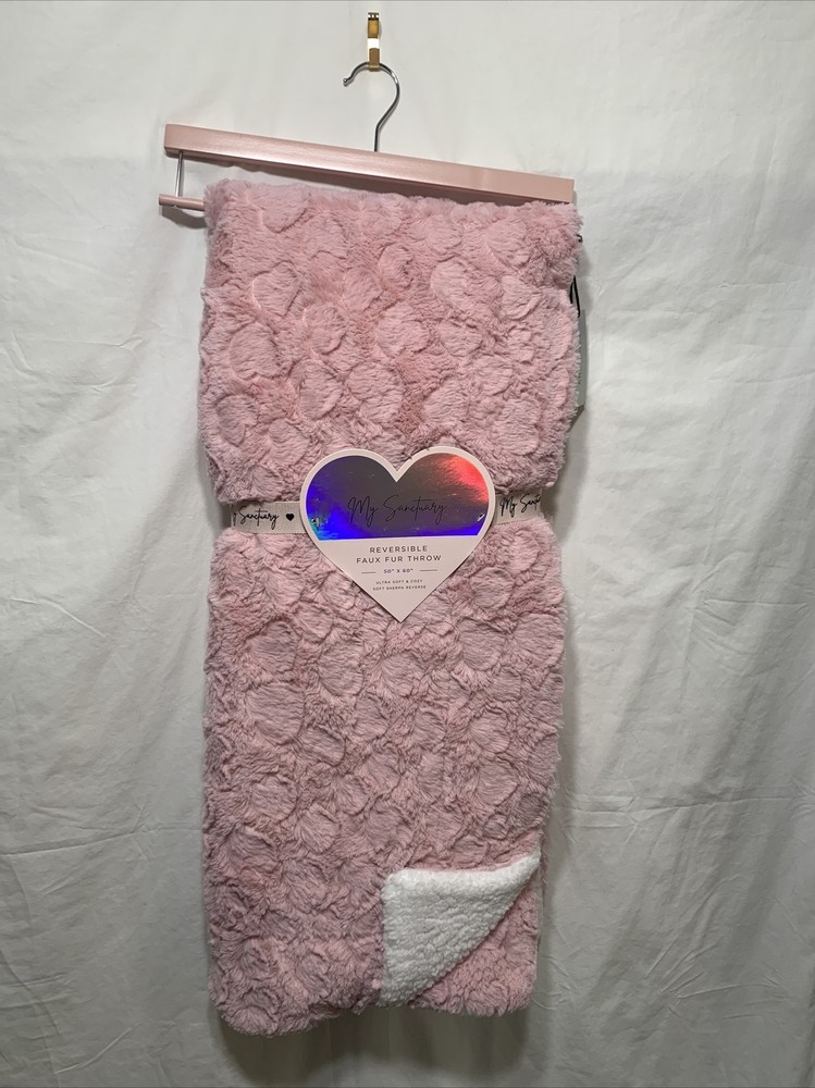 My Sanctuary Reversible Faux Fur Blanket Soft Warm Fluffy Bed Sofa Throw Pink.