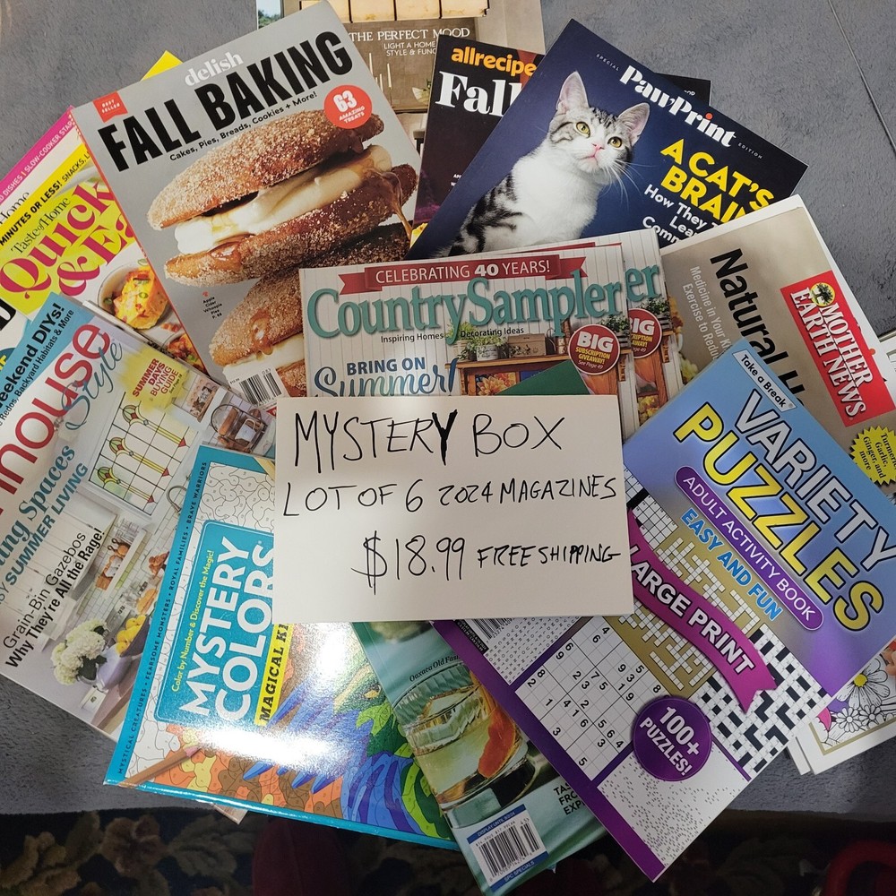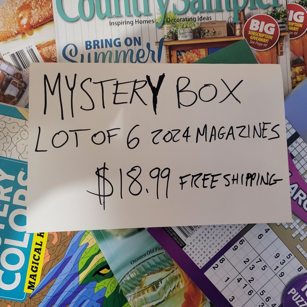 You recieve 6 brand new 2024 magazines All are selected at random - no returns! You get what you get! Coloring books - home garden magazines - cooking magazines picked from a selection of 200 2024 magazines! You won't beat this deal from a 100% feedback seller!!