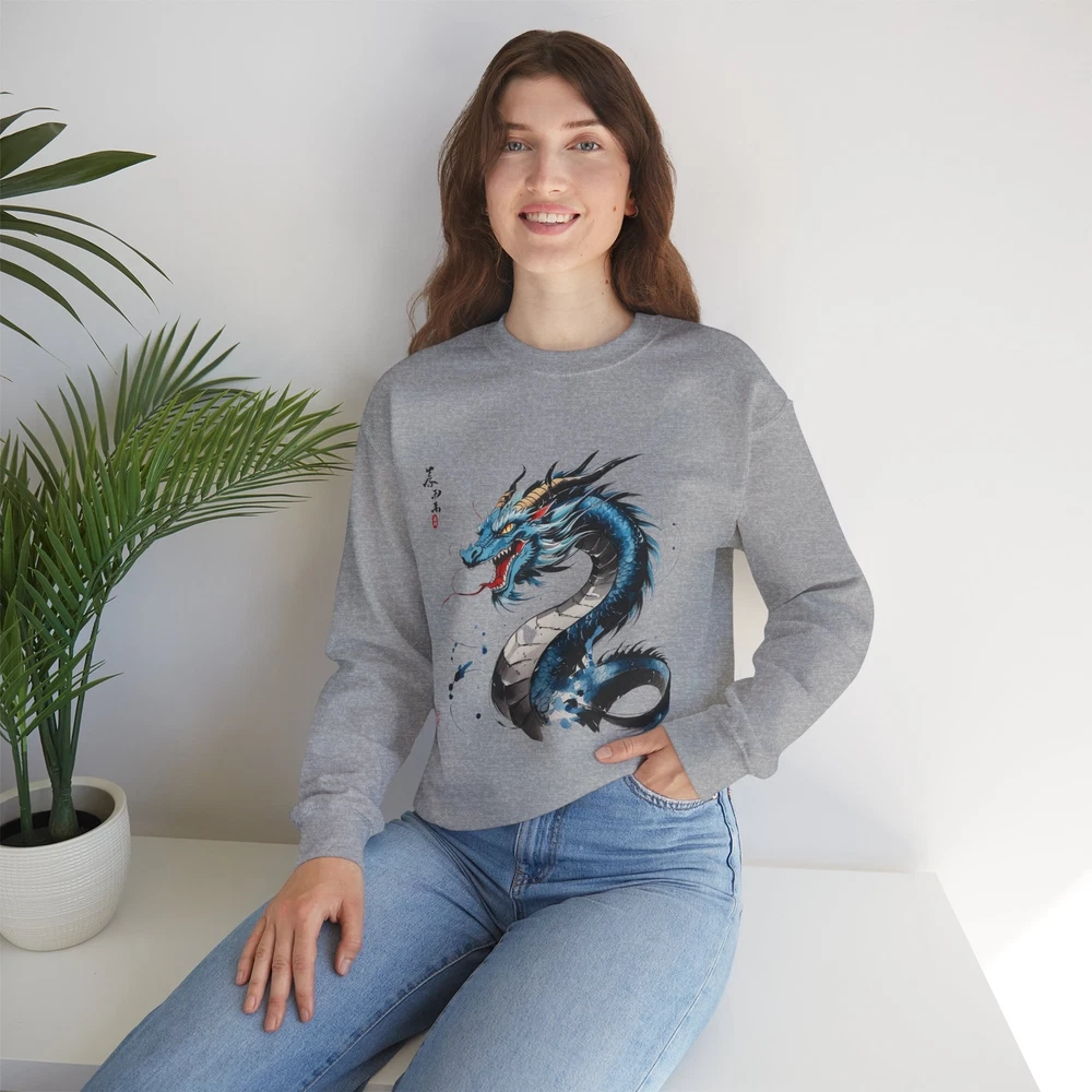 Embrace comfort and style with our cozy Crewneck Sweatshirt, perfect for layering during chilly days or lounging at home. With its classic fit and soft fabric blend of 50% cotton and 50% polyester, this sweatshirt wraps you in warmth while allowing for effortless movements. The striking dragon design brings a bold and artistic flair, making it a statement piece in any wardrobe. Ideal for casual outings, cozy nights in, or as a unique gift for friends and family, this sweatshirt resonates with lovers of art and culture alike. Celebrate special occasions like birthdays, holidays, or simply treat yourself to something special. Available for adults, it’s perfect for anyone looking to combine comfort with artistic expression. Product features - Without side seams for a sleek design - Elastic ribbed knit collar for shape retention - Embroidery decoration option available - Durable double-needle stitching for longevity - Ethically made with sustainable materials Care instructions - Machine wash: cold (max 30C or 90F) - Non-chlorine: bleach as needed - Tumble dry: low heat - Do not iron - Do not dryclean EU representative : HONSON VENTURES LIMITED, 3, Gnaftis House flat 102, Limassol, Mesa Geitonia, 4003, CY Product information : Gildan 18000, 2 year warranty in EU and Northern Ireland as per Directive 1999/44/EC Warnings, Hazard : For adults, Made in Nicaragua Care instructions : Machine wash: cold (max 30C or 90F), Non-chlorine: bleach as needed, Tumble dry: low heat, Do not iron, Do not dryclean