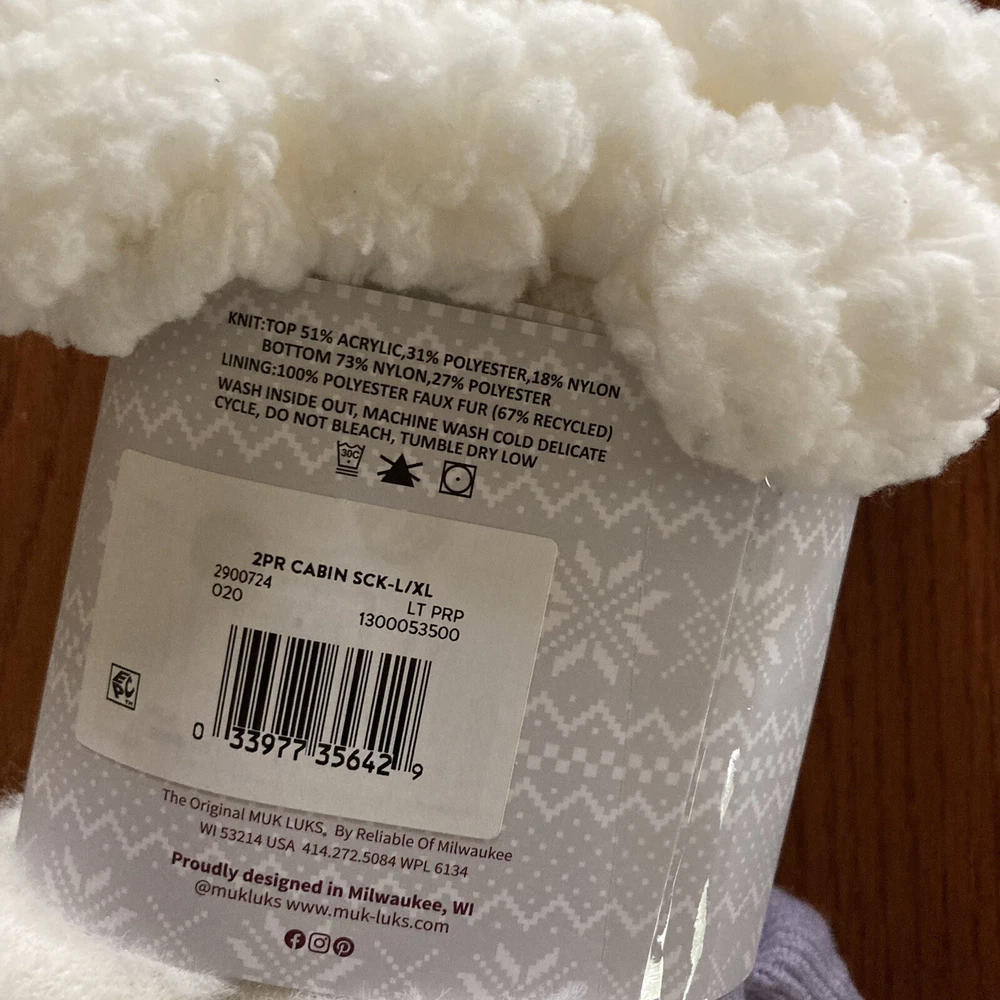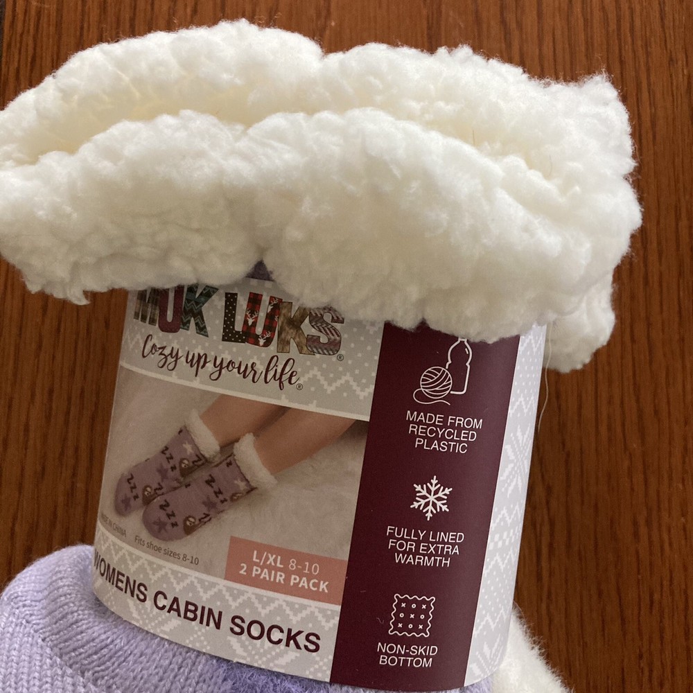 NEW 2 PAIR MUK LUKS CABIN SOCKS (L/XL 8-10) Lavender& White Sloth Print & Solid. Very soft with non-slip soles. Price is for 1 package containing 2 pair of slippers. CB...