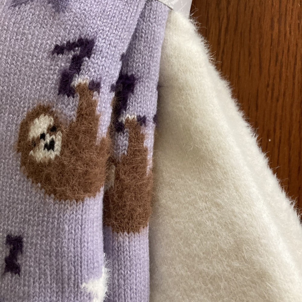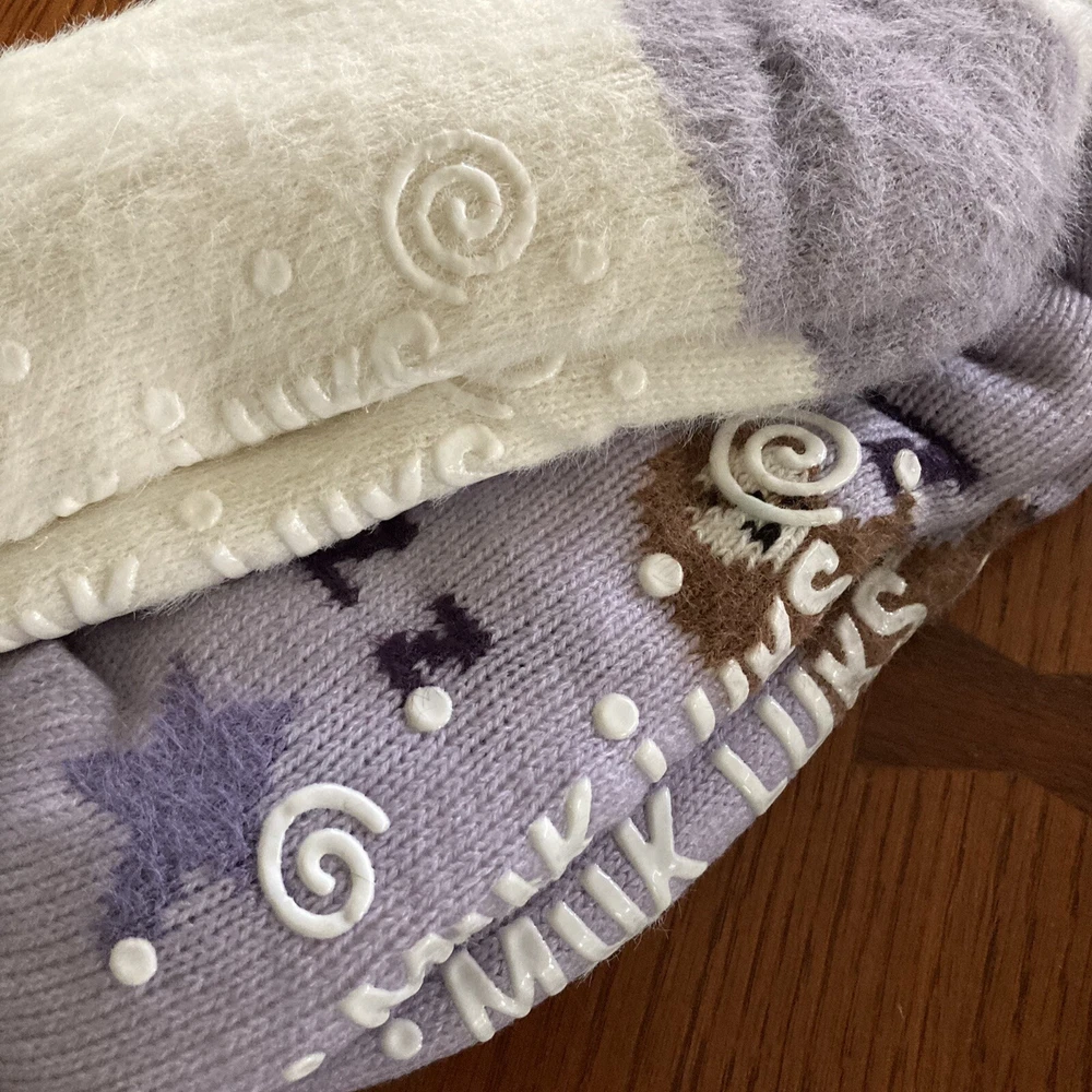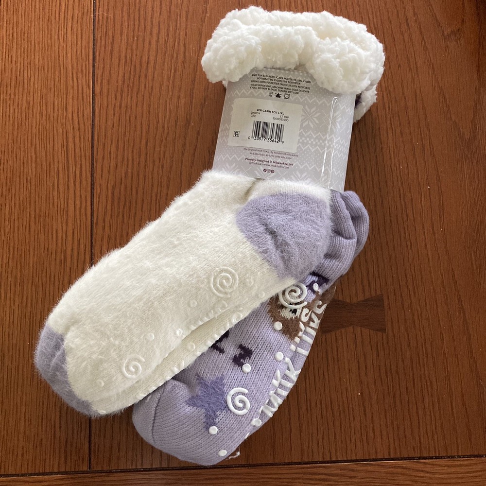 NEW 2 PAIR MUK LUKS CABIN SOCKS (L/XL 8-10) Lavender& White Sloth Print & Solid. Very soft with non-slip soles. Price is for 1 package containing 2 pair of slippers. CB
