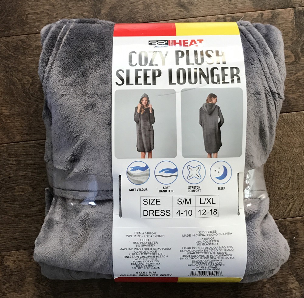 NEW 32 Degrees Heat Cozy Plush Fleece/Velour Sleep Dress Lounger Gray Size S/M. You are looking at a fabulous cozy ultra soft velour/fleece dress from 32 Degrees. It is stretchy and features a functional kangaroo pocket in the front. The dress hits at the knee and has a round hem. This cozy dress is perfect for lounging around the house and makes a great sleep dress. Some packaging may be ripped or item was placed back into packaging incorrectly. All items are unworn and new with tags . Features: Soft velour fabric Stretch Comfort Front pocket Fabric Content: 95% Polyester, 5% Spandex Sizing : S/M = 4/10 Front/Back Body Length: S/M = 40 ½” Care Instructions : Machine wash cold with like colors Gentle cycle Use mild-detergent Only non-chlorine bleach when needed Tumble dry low Remove promptly Do not iron Do not dry clean Feedback We take our reputation very seriously, we buy and sell online, so we understand the value of trust. If you are not satisfied with your order, please contact us first and we will work with you to resolve it to your satisfaction. All our items are stored in a safe and clean environment and packed with care! Please check out our other items. New Items added weekly. BIN BAG 3