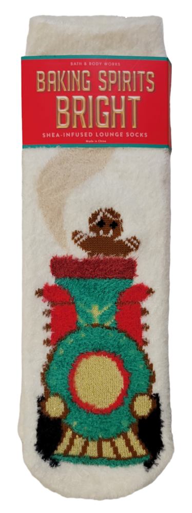 NEW Bath & Body Works Gingerbread Train Shea-Infused Lounge Cozy Socks ONE SIZE Infused with shea butter Super soft with non-skid grips Machine washable