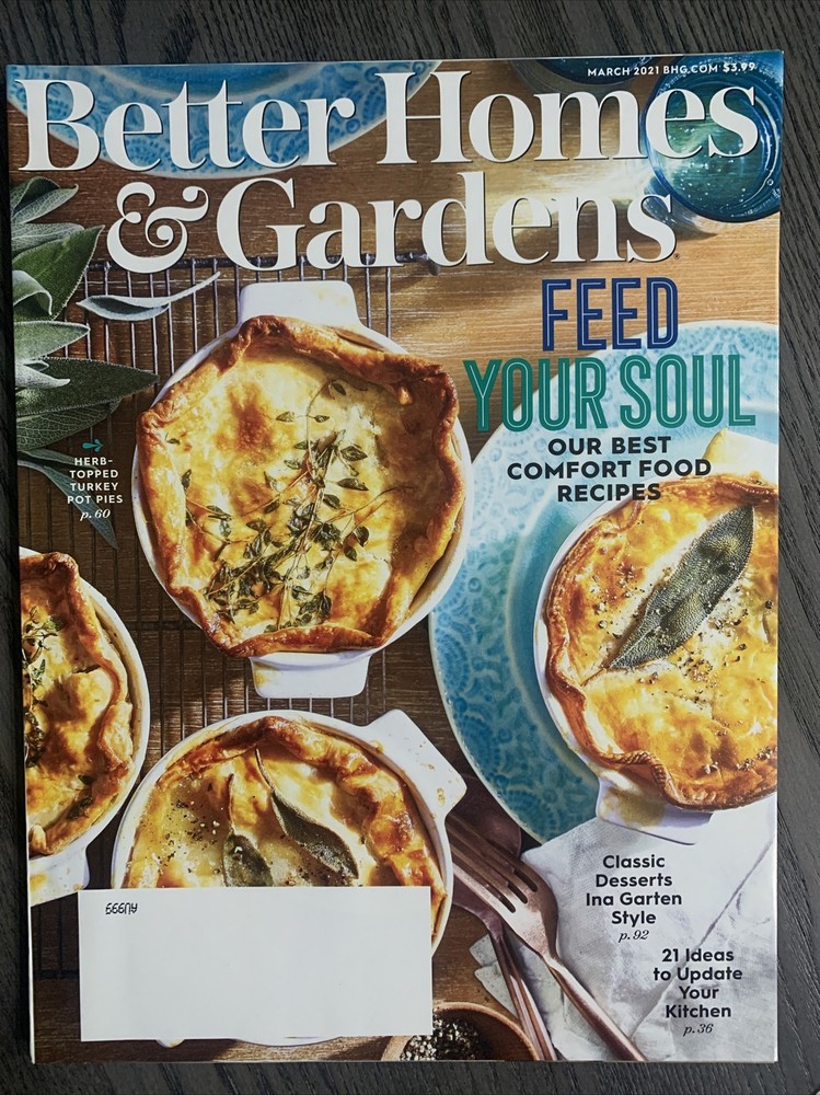 BUY MORE SAVE MORE ON SHIPPING MOST MAGAZINES ARE $2.99 EA LOWEST PRICE ON EBAY ITEMS SHIP OUT SAME DAY ON SHIOPPING FLAT RATE SHIPPING ONLY $7.95 ON AS MANY AS YOU LIKE TO PURCHASE ITEM SHIP OUT SAME DAY TRACKING NUMBER PROVIDED .. NEW Better Homes & Gardens March 2021 Feed Your Soul, Comfort Food & More. FROM YOUR AMAZING EBAY SELLER ….
