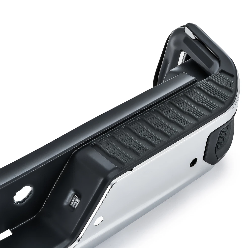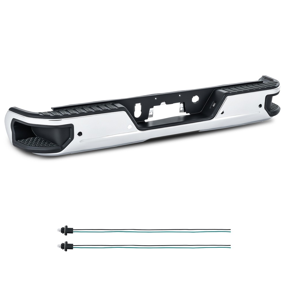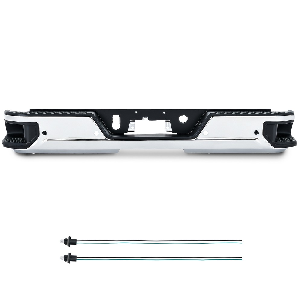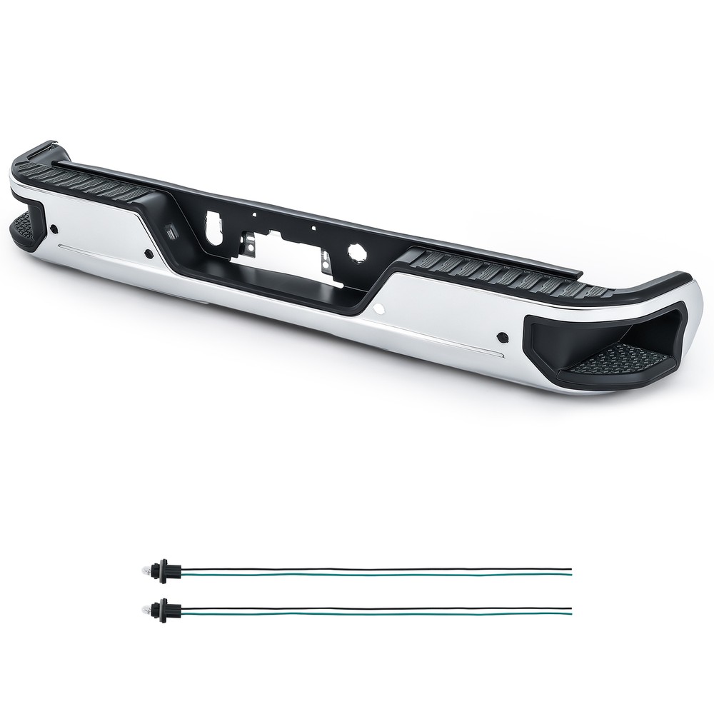 Description Enhance your truck's protection and style with our heavy-duty rear bumper, designed for 2019-2024 Chevrolet Silverado and GMC Sierra 2500 3500. Made from high-strength steel, this premium bumper absorbs impact, shielding your truck from dents, scrapes, and costly damage while maintaining its rugged appearance. The nickel-plated finish resists corrosion, keeping your bumper looking new through all kinds of weather. With pre-drilled parking sensor holes, it allows for easy installation of backup sensors, ensuring enhanced safety and convenience when reversing or parking. Plus, the included license plate lights ensure your vehicle stays visible, even in low-light conditions. Upgrade your truck today for maximum protection, improved functionality, and a long-lasting look that stands out on the road. Features Superior Protection: OMT's rear bumper shields your truck from rear-end collisions, dents, and scrapes, offering reliable protection on the road while enhancing its bold, rugged look Perfect Fit: Compatible with 2019-2024 Chevrolet Silverado and GMC Sierra 2500 3500, this truck rear bumper ensures a seamless fit across various configurations Built to Last: Made of steel with a durable nickel-plated finish, our bumper offers exceptional strength, corrosion resistance, and long-lasting protection against harsh weather and tough environments Made for Convenience: The pre-drilled parking sensor holes make backup sensor installation a breeze. Plus , two included license plate lights keep your truck street-legal while improving visibility during low-light or nighttime driving Hassle-Free Installation: Designed as a direct replacement, this rear bumper ensures a quick and easy installation, with its unibody construction for added strength and durability Specifications Material: Steel, Plastic Finish: Nickel Electroplating Compatible Model: 2019-2024 Chevrolet Silverado, GMC Sierra 2500 3500 License Plate Light Power: 12V 5W Net Weight: 36.2 lb. (16.4 kg) Interchange Part Number: GM1103217 Package List 1x Rear Bumper 2x License Plate Lights On Feb 10, 2025 at 03:39:44 PST, seller added the following information: