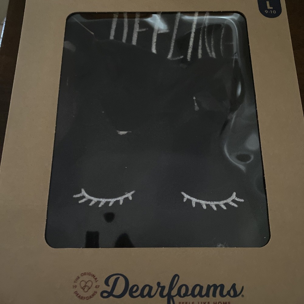 NEW Dearfoams Women Large 9-10 Slippers Gift Set Eye Mask Travel Bag Memory Foam. Also has a black Scrunchie. Not listed on box.