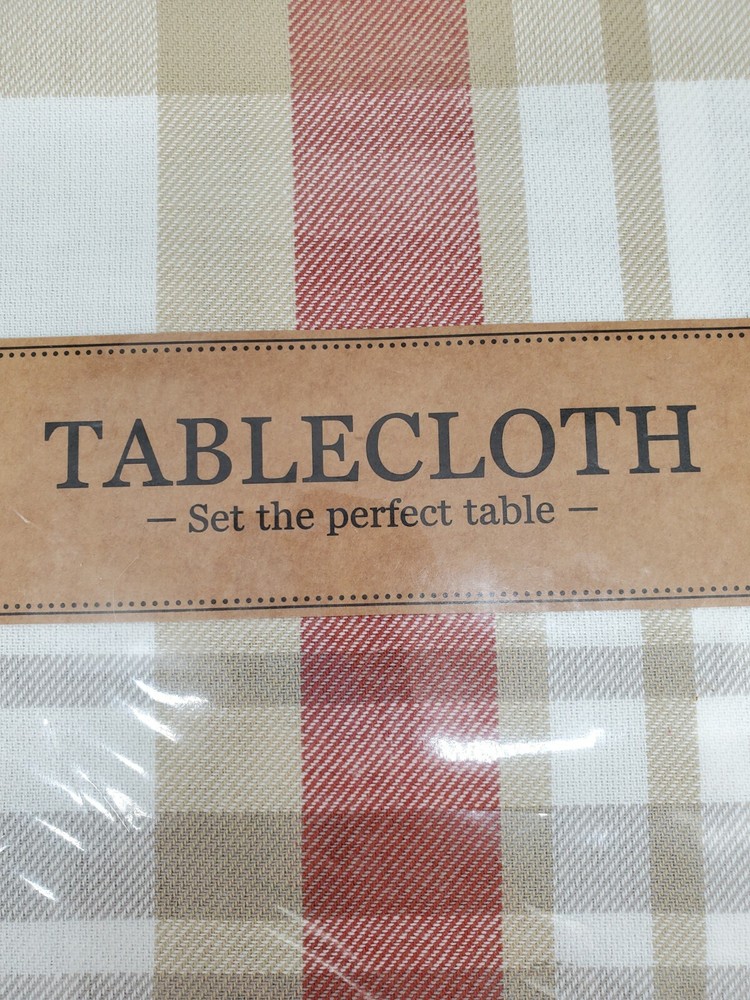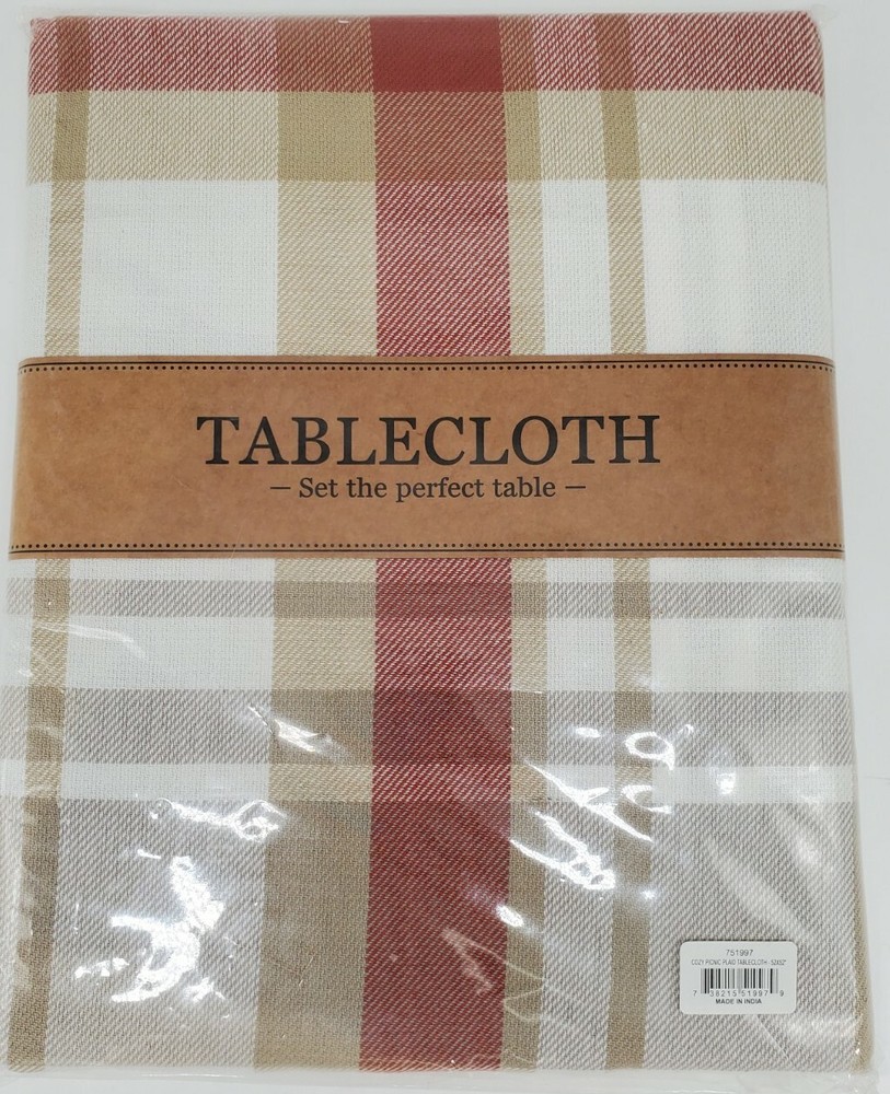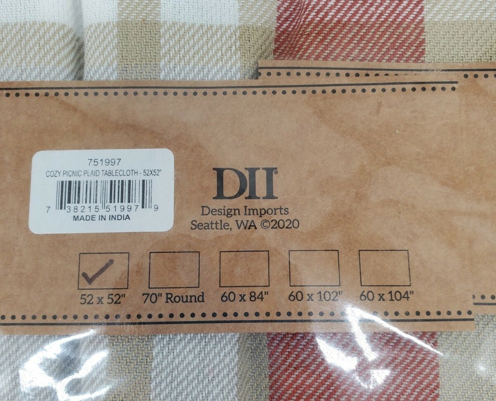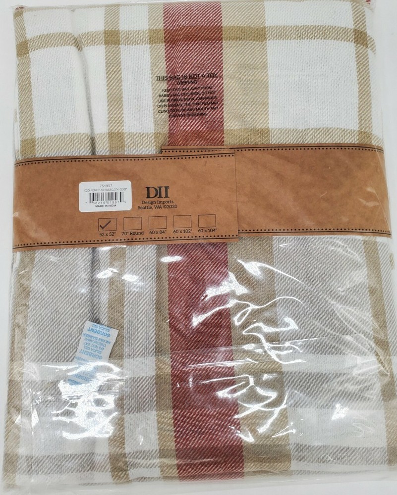 NEW Design Imports DII Cozy Picnic Plaid Tablecloth 52 x 52 Tan Gray Rust White. New in sealed bag. Will ship via usps priority mail.