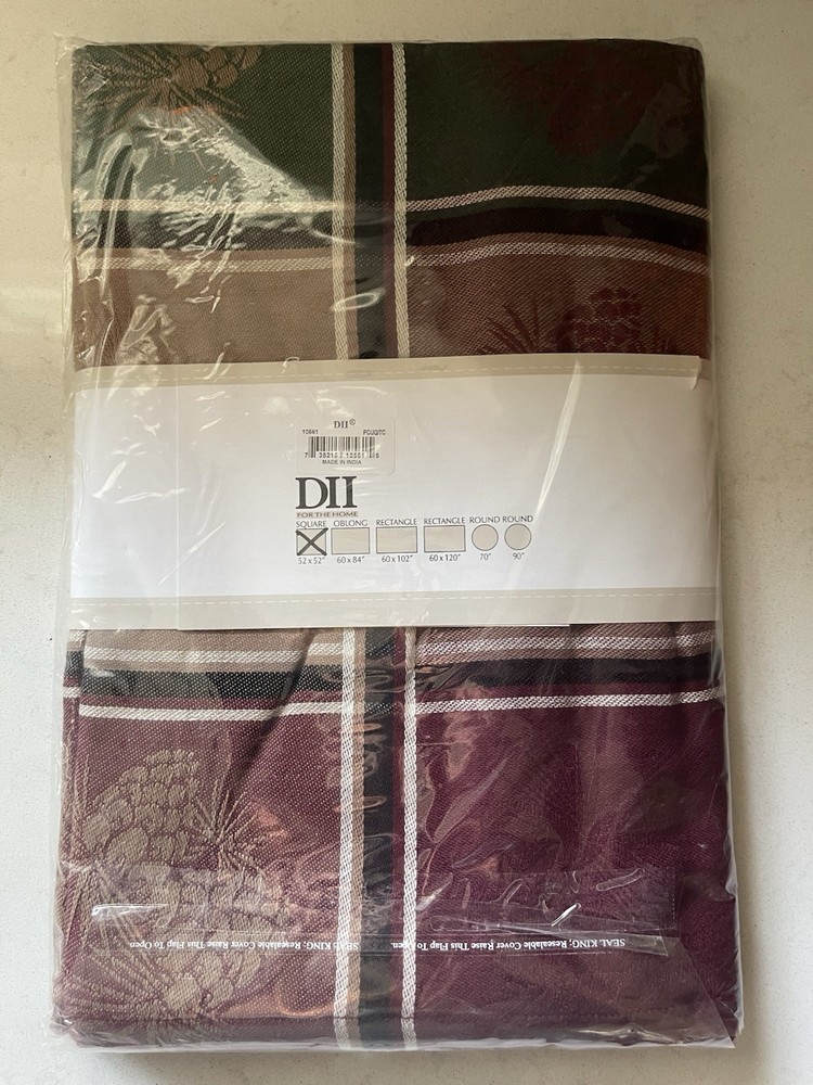Enhance your dining experience with the Design Imports DII Fall Acorn Tablecloth, a perfect addition to any Kitchen or Dining Room setting. Measuring 52 inches in both length and width, this square tablecloth features a charming acorn pattern in warm tan, green, and burgundy hues that effortlessly capture the spirit of the Fall season. Crafted from durable materials, the tablecloth is designed to withstand the everyday rigors of mealtime while adding a touch of tradition and comfort to your table. Whether hosting a casual family dinner or an elegant gathering, this multi-colored tablecloth sets the stage for a delightful dining experience.