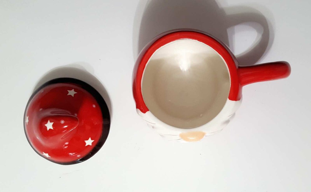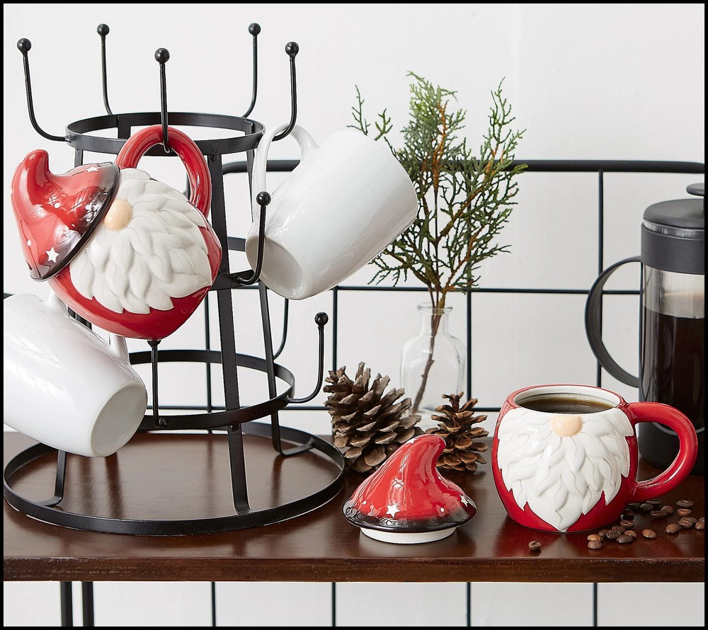 A little coffee to top of your morning… Gnome-shaped Santa Claus mug includes a removable cap, perfect for when you want to drink in the season. By Design Imports Hand painted Ceramic Hand wash 12fl oz 5.5×5.25×4in. .