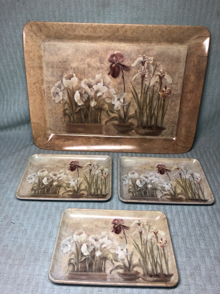 NEW Design Imports Melamine Italy “Asian Floral” Large Tray (12 1/4” x 9”) and (3) Small Trays (5 7/8” x 4 1/8”). NEW. No signs of use....