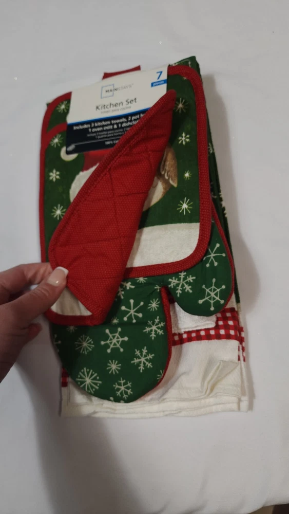 | Set Includes | 2 Kitchen Towels, 2 Pot Holders, 2 Dishcloths, 1 Oven Mitt |