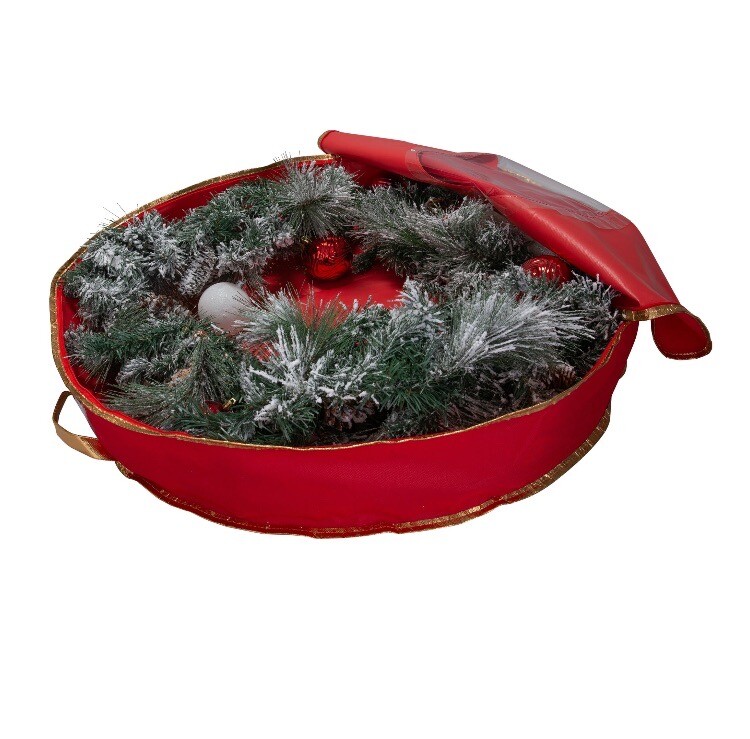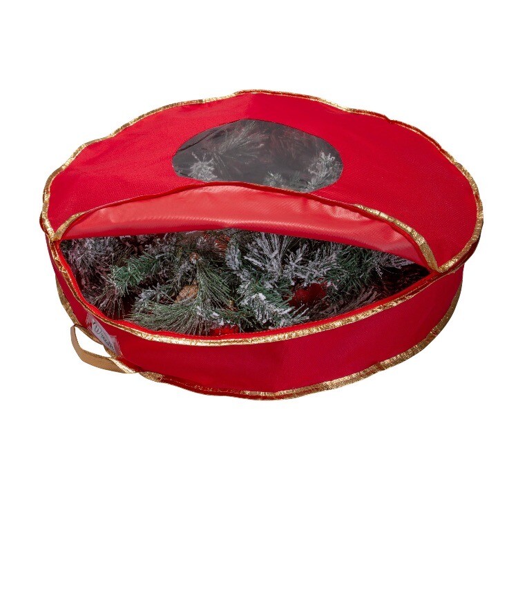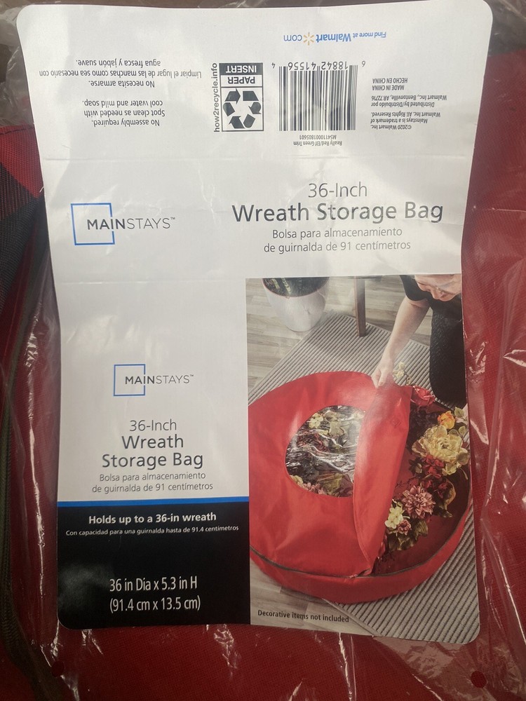 Keep your wreaths organized and in good condition with this Mainstays storage bag. Measuring 36 inches in diameter and 5.3 inches in height, this clear plastic bag is perfect for large wreaths. The solid pattern and round shape add a stylish touch to your storage space. The Mainstays wreath storage bag is brand new and can hold one item. Its material is durable and reliable for long-term use. Its color adds brightness to any room, making it perfect for home organization. Get your hands on this Mainstays storage bag today and keep your wreaths in pristine condition!