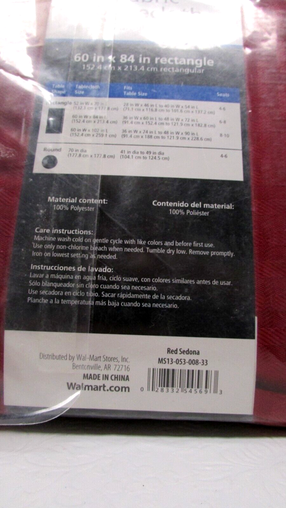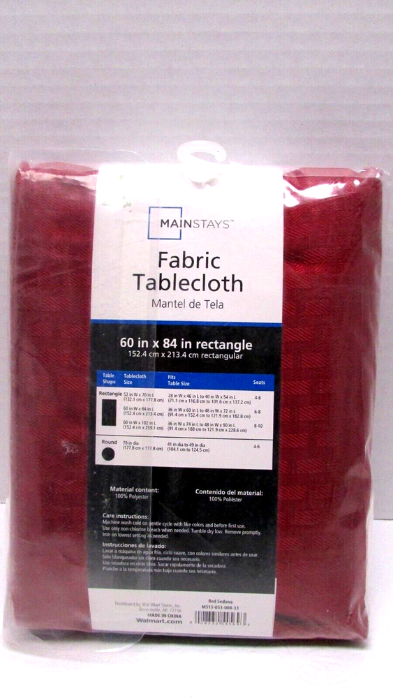 DESCRIPTION: You are purchasing a NEW Mainstays Red Sedona Textured Tablecloth 60"x 84" Machine Washable Polyester. Easy care-Machine washable. 100% Polyester. This comes from a smoke free home! I will combine shipping on multiple purchases! (box T2) SHIPPING INFO: Buyer to pay shipping costs. Items sold as is! Item to be sent via USPS. BIDDING and PAYMENT INFO: Winning bidder must make payment within 3 days of close of auction or item will be re-listed. ***BEFORE BIDDING*** * Please see pictures for more detailed information and condition of item; pictures are part of description. * Descriptions are to the best of my ability, remember what might be excellent or good condition to me may not be excellent or good to you. Please inquire with any questions. * Please see pictures for more detailed information and condition of item; pictures are part of description. * Most items are used & are sold "As is" unless noted differently in the description. You will get what is pictured. Multiple pictures with different views are taken to show condition. * Due to the item's age do not expect items to be in perfect condition and I may not describe every little scratch or spot. * Please note 'used' or 'previously owned' items will to some degree show some signs of normal use such as scuffs, scratches, chips, creases, small dings/dents, rust, spots, stains, dirt, dust, signs of installation/removal, previous owners name/initials and may have wear that you would not expect from purchasing a new item and any more noteworthy condition issues than such will be mentioned above. Item may need cleaning. * I have no control over shipping costs. It is what it is. All items are sold as is, where is. I will only accept returns if you find that I have misrepresented myself. Most of my items are vintage and will naturally show wear from age and use. This is an auction, and the sale of this item will be considered final. I have endeavored to photograph and accurately describe every item as to its condition and authenticity to the best of my ability. I am happy to answer any questions during the auction! PAYMENT: Payment must be received within 3 days of the closing date of the auction. Email me if you have any questions about payment. Your order will be shipped to the address registered with Ebay. If you want the item shipped to a different address, you must email me and receive a confirmation of your request. Otherwise, the item will be shipped to the registered address.