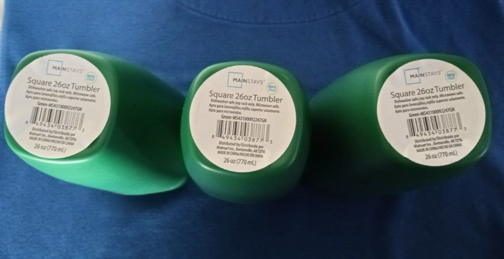 Product details These trendy colored 26-ounce square tumblers from Mainstays are sure to be a favorite in your home. Mainstays has your entertainment needs covered with these durable plastic tumblers. The Mainstays 26-Ounce Plastic Tumblers are ideal for everyday dining use and great for parties! Made with family friendly BPA-free Polypropylene plastic, these tumblers are safe for use in the top rack of your dishwasher and are microwave safe for convenience. make these durable and re-usable tumblers perfect for your indoor or outdoor entertaining needs. Mainstays tumblers are great starter pieces for those on the move, great for kids and adults alike. Made with you in mind, these fashion forward colored tumblers are great for anyone! Featuring a smooth matte finish for a contemporary and trend forward look. . Mainstays 26-Ounce Square Plastic Tumbler, green 26 Fluid Ounce Capacity Material content: Polypropylene Plastic Product Dimensions: 3.50-Inch Diameter by 6.75-Inch Height BPA Free Durable and suitable for Everyday Use Perfect for entertaining Ideal for Indoor or Outdoor use Microwave and Dishwasher safe for convenience Specifications Brand Mainstays 12 pcs see picture