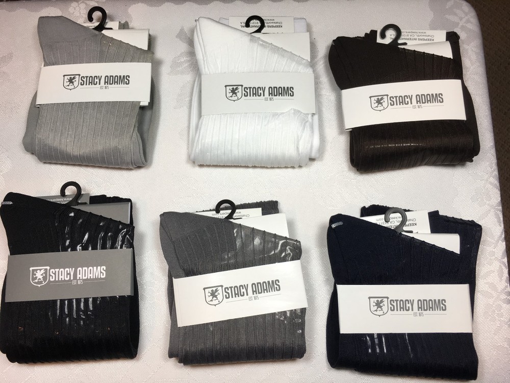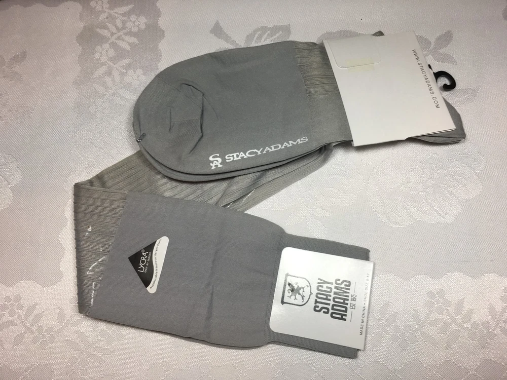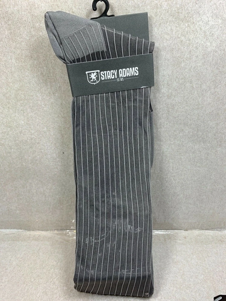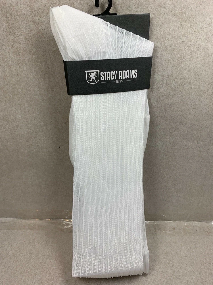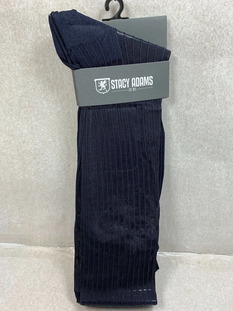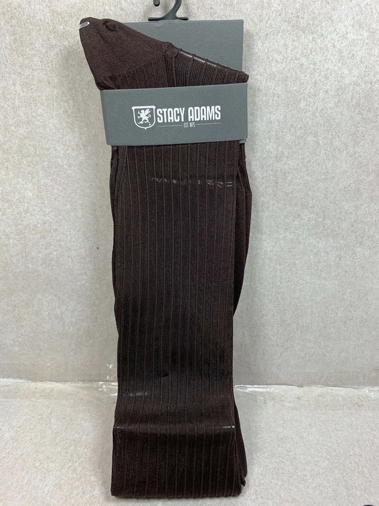 CLASSIC STACY ADAMS OVER THE CALF RIBBED SILKY LOOK LENGTH OF THIS SOCKS IS 28" FROM TOE TO THE CALF BLACK , NAVY BLUE, BROWN , SMOKE GREY , WHITE MEN'S SHOE SIZE 6-12...