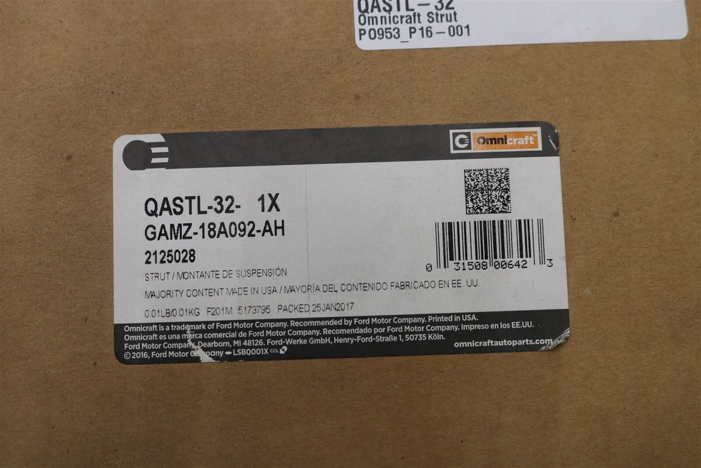 NEW Omnicraft Suspension Strut & Coil Spring Front Right QASTL-32 Equinox 05-06 Grand Tex Part Number: QASTL-32 Fitment Please make sure this fits your vehicle! Is this the correct part? LOOK at the existing part you are replacing and compare to the picture above CHECK the part numbers of the item that you need and compare to the reference numbers and part number listed above. FIND the make, model, year, and trim (if applicable) to ensure a match Please see the Compatibility grid at the top of the listing. Please click the link to ensure proper fitment. Fitment information may not be available for all products and those without fitment will not have a link at the top. When using the eBay compatibility chart, you MUST view the NOTES section for your particular vehicle. The Notes will contain specific fitment information for your vehicle. You get what you see! We take pictures of the actual on hand part that we are selling. If you see it, we have it! This also means that we make every effort to correctly list the part with its fitment and include all items in the pictures. Unless otherwise noted in the listing, what you see is what you get! WARRANTY NOTE: Grand Tex Auto Parts does not offer any warranties on items that we sell. No warranties are expressed, written, or implied. You may purchase a warranty on some parts through a third party warranty provider. Grand Tex Auto Parts does not handle or facilitate any warranty purchases. You must purchase a warranty through eBay or a third party provider (i.e. Assurant). RETURNS Genuinely faulty or damaged goods will be replaced or money refunded. However, we must be advised of any faulty or damaged goods immediately upon receipt of the item. All parts must be returned in the original packaging! All returns must be made within 30 days of receiving! About the manufacturer Meet Omnicraft™ Available For Most Major Brands On The Road. Quality parts you can trust. Meet Omnicraft Omnicraft is the exclusive “Most Makes” parts brand of premium aftermarket parts. With over a century of parts heritage to build upon, Omnicraft provides excellent quality and fit and is a preferred choice of professional automotive technicians. It’s the first new parts brand that Ford Motor Company has launched in 50 years, but its heritage runs deep. With the addition of Omnicraft, customers now have access to high-quality and competitively priced parts for all other major brands. A trusted relationship just got better. Omnicraft’s Product Lineup Omnicraft parts are backed by Ford Motor Company and compete with premium aftermarket parts offerings. Omnicraft offers the most commonly used maintenance and light repair parts including engine oil and brake pads. Additional product lines are in development and will launch as they become available. Powered by SixBit's eCommerce Solution