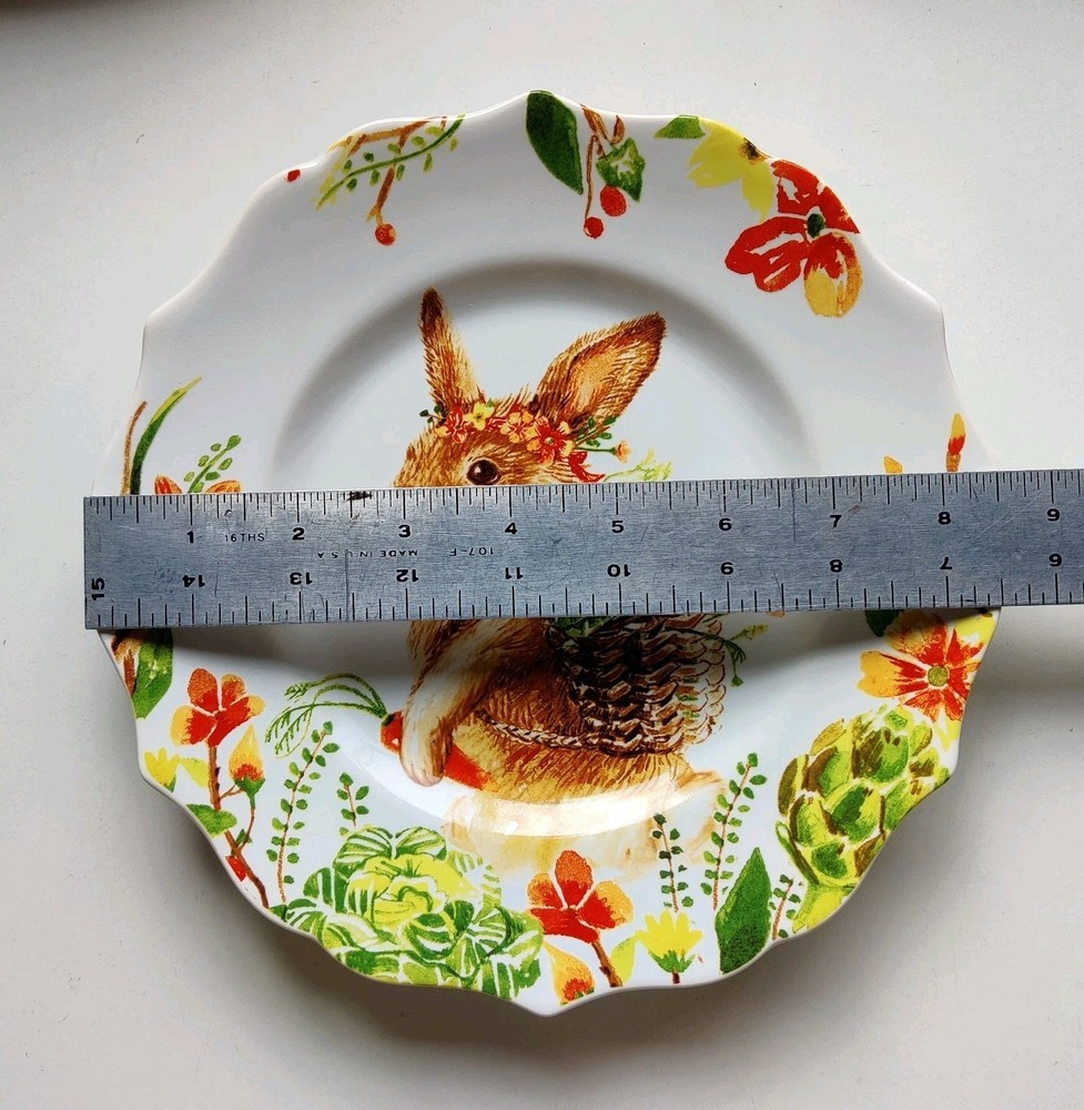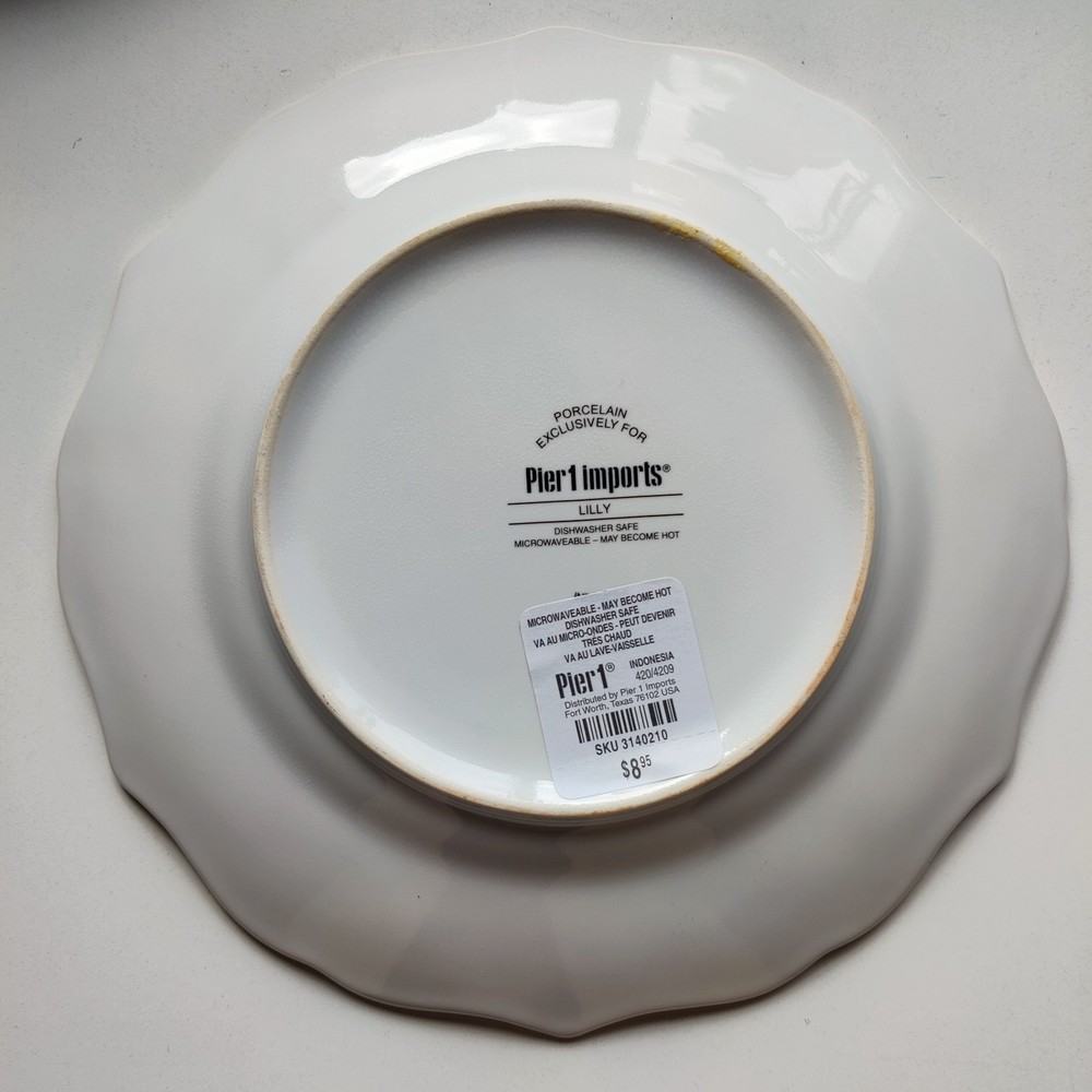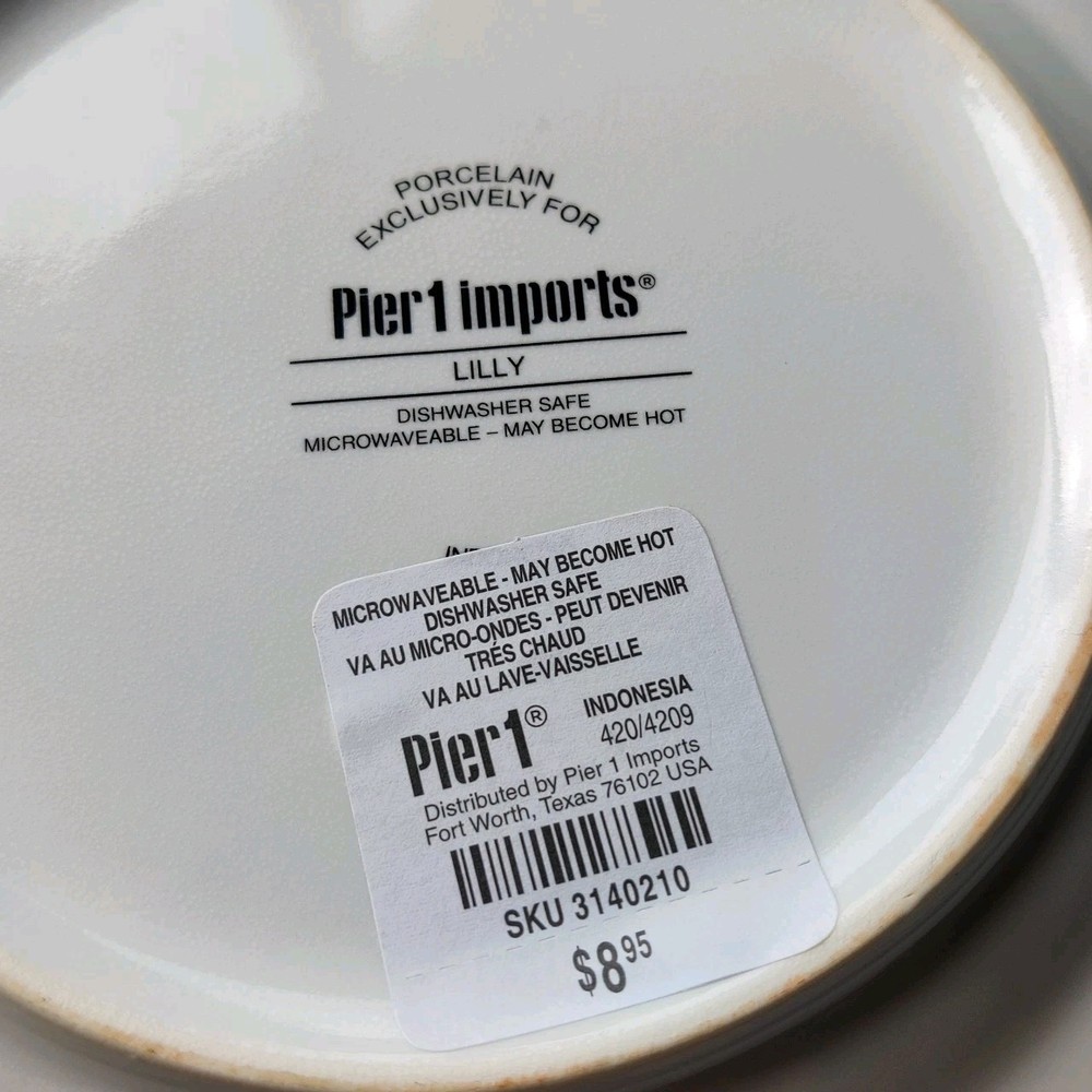 NEW PIER 1 IMPORTS Salad/Dessert Plate - Lilly - 8.5" Spring Rabbit Basket Porcelain Very pretty little plate, 8.5 inches diameter. Perfect for a Garden Party, Baby Shower, Spring Celebration... No chips, cracks, or repairs. Still has its original Pier 1 Imports label. -------------------------------------------------- Have questions? Please ask, I am happy to answer. Please refer to the pictures, they are part of the description. I will combine to save on shipping when possible. Just let me know. Thank you!