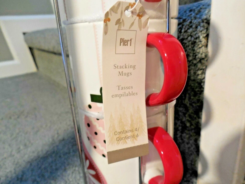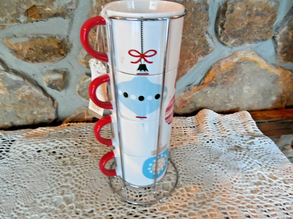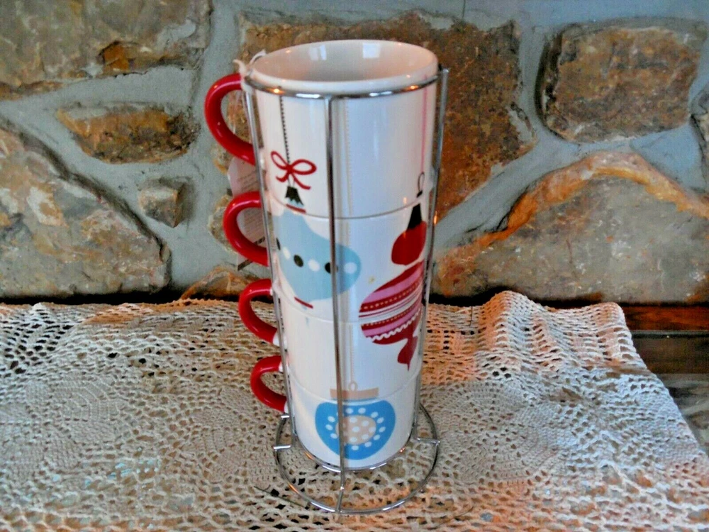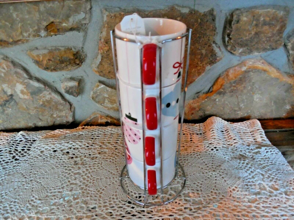 New Pier 1 Set Of Adorable Coffee Cups New With Tag These Are In A Metal Holder About 10 Inches Tall Add $15.00 For Shipping—These Are Very Heavy!