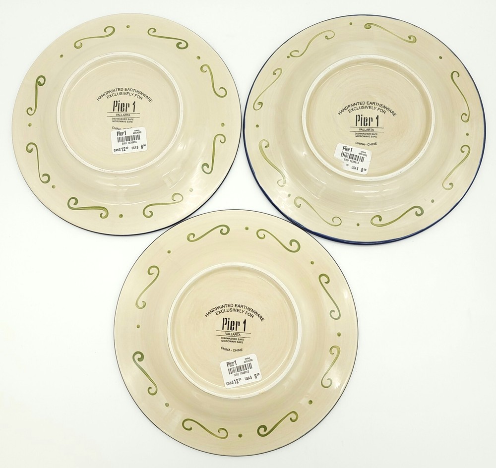 NEW! Set of 3 Pier 1 Imports Vallarta Salad / Lunch Plates 9" Red Blue Yellow. Brand new with original tags Thank you for your purchase! From a smoke free, pet friendly household **Please understand that I typically ship the following business day after your purchase. Due to much higher volume during the Holidays, the USPS may experience delays, and a particular delivery date cannot be guaranteed.