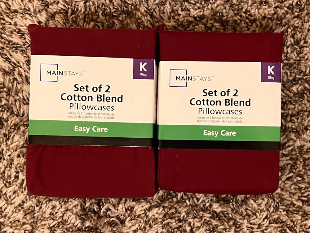 Set of 4 Cotton Blend King Pillow Cases Deep Red/Maroon BRAND NEW FACTORY SEALED Ships FREE Same or Next Business Day!!