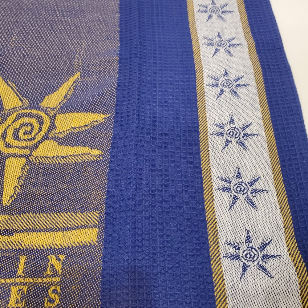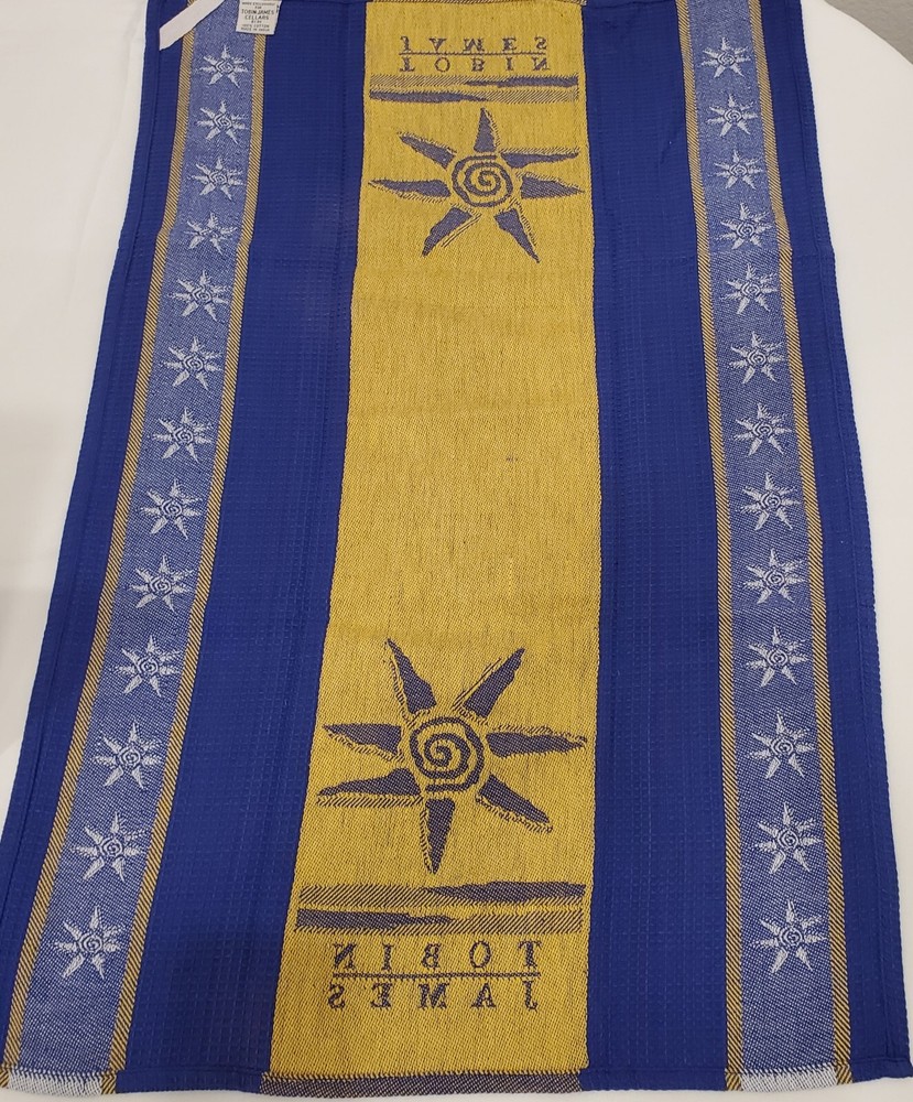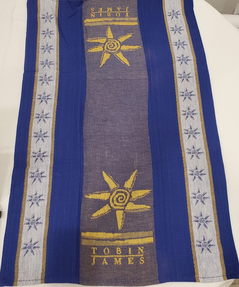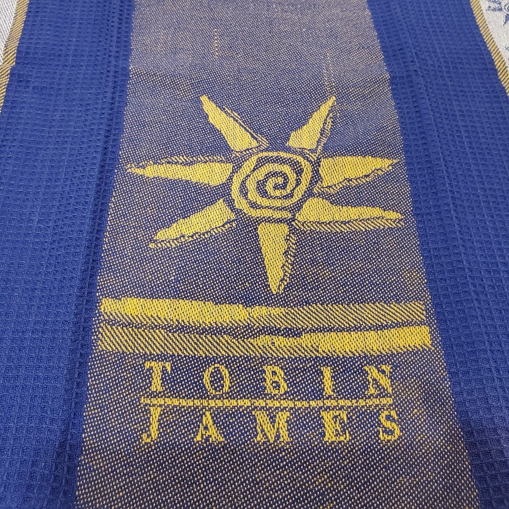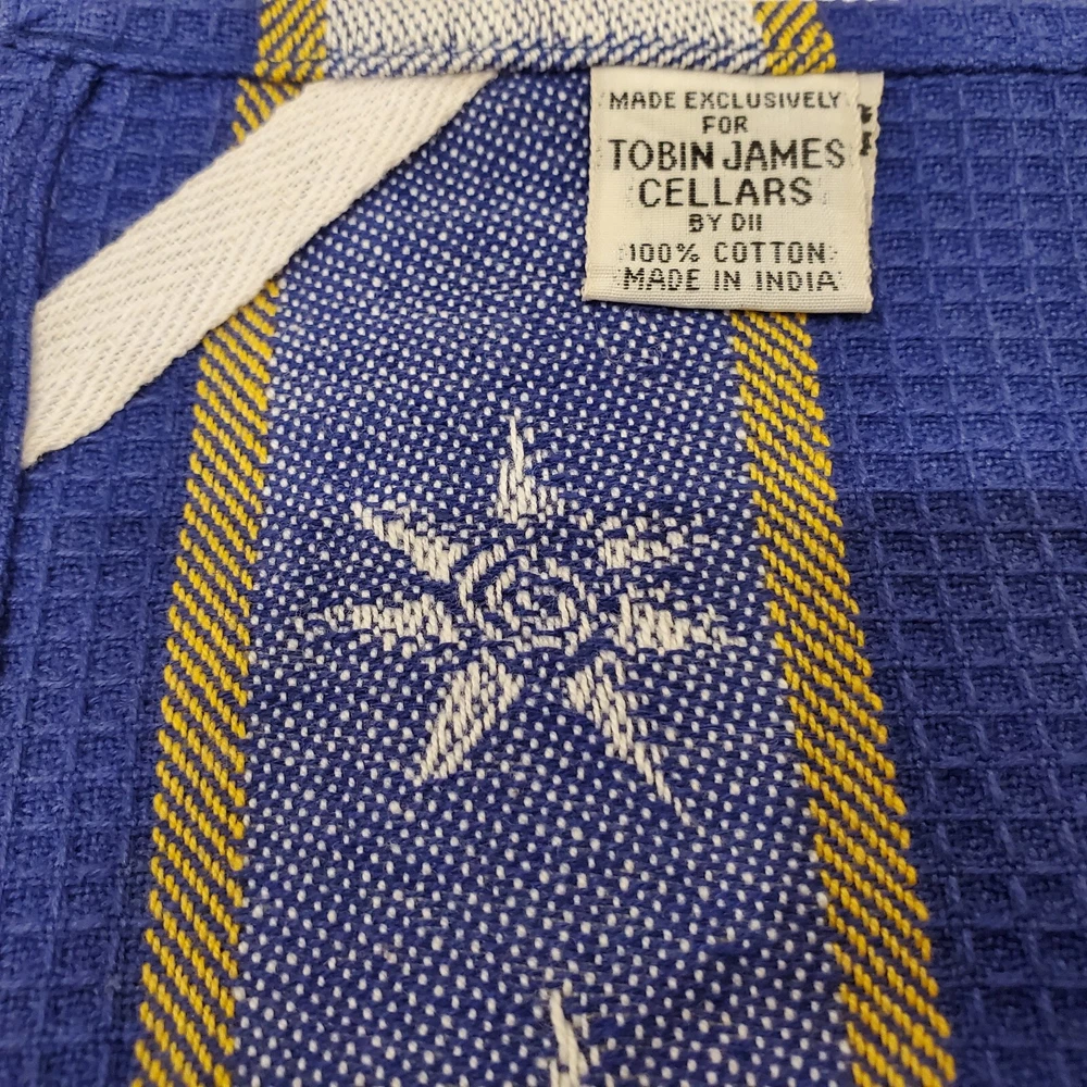 Tobin James Cellars - Blue and yellow sun logo 100% cotton waffle kitchen dish towel. Measures approximately 28" x18". Item is in new and never used condition, from a smoke and pet free home. Shipped via USPS Ground Advantange.