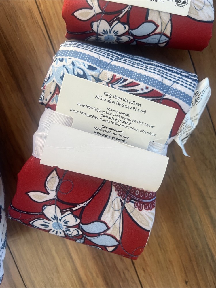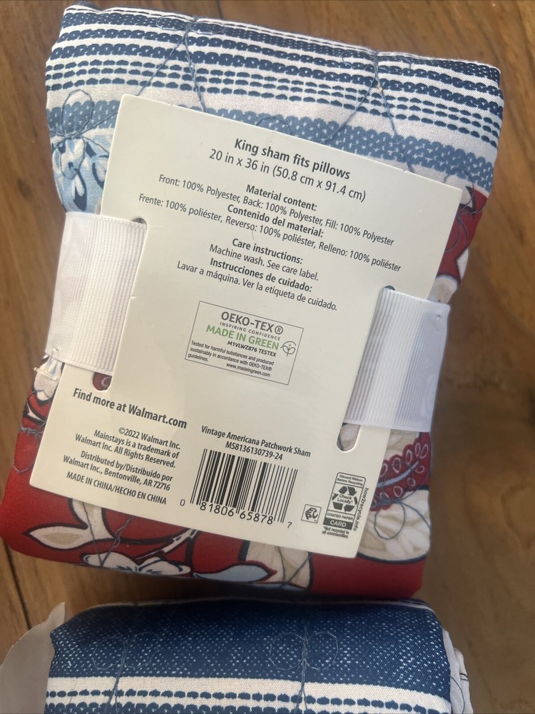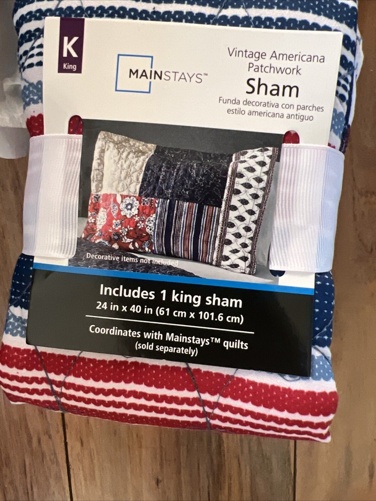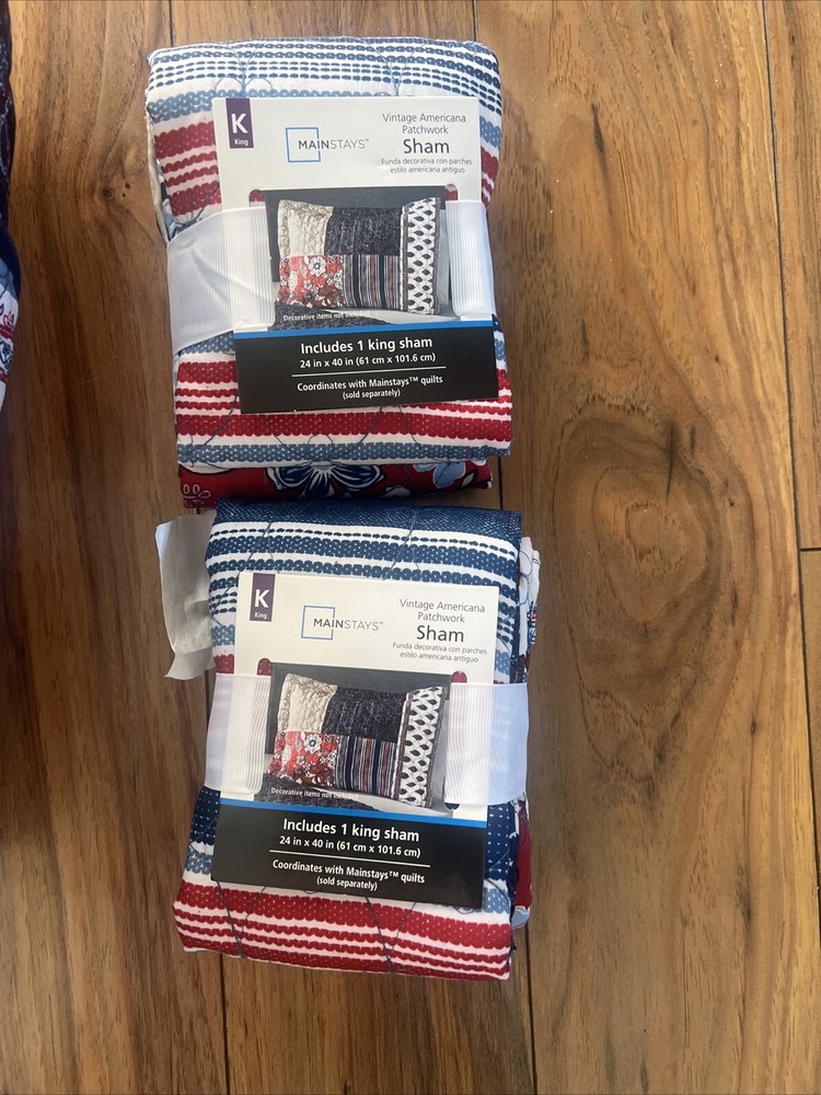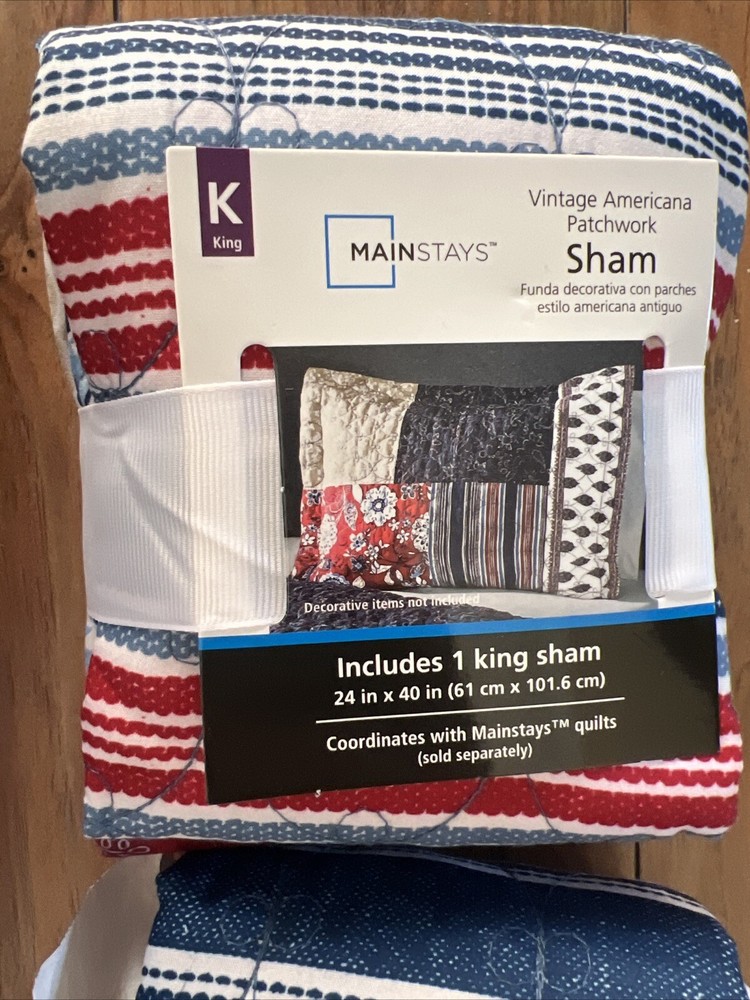 Add a touch of vintage charm to your bedroom with this set of two king size shams from Mainstays. The rectangular shape and patchwork pattern of these quilted shams in red, white, and blue make them a perfect fit for any farmhouse style bedroom. Made of 100% polyester, these shams are easy to care for with machine washable instructions. The quilted design adds a cozy touch to your bedding collection. Ideal for adults, these shams are a great addition to any bedroom decor.