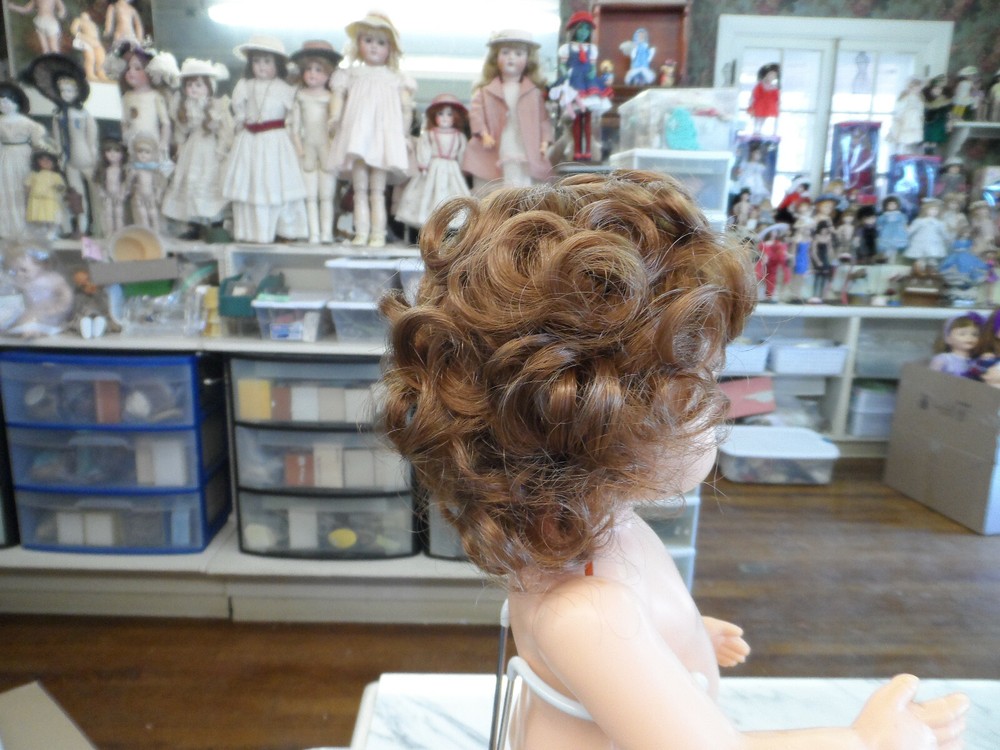 THIS IS A CUTE CURLY WIG FOR TERRI LEE DOLL . THE SIZE IS 10-11 AND IS A PERFECT FIT ! IT HAS A FULL CAP . THE COLOR IS MEDIUM AUBURN . YOU CAN GLUE IT OR NOT. SHIPPING IS 4.95 I WILL COMBINE SHIPPING...