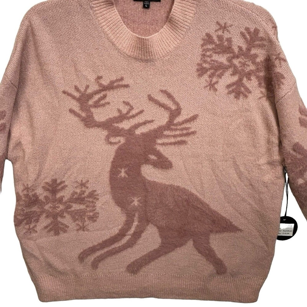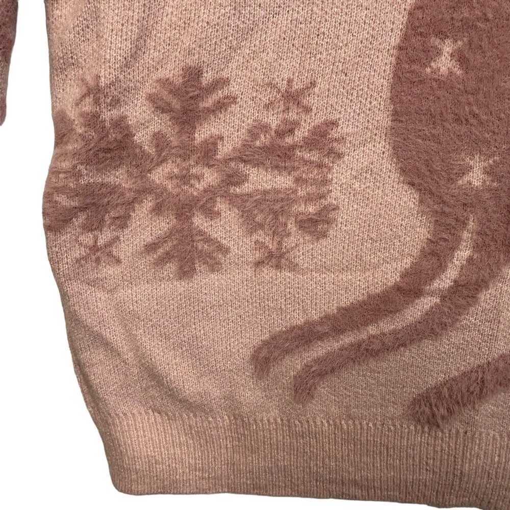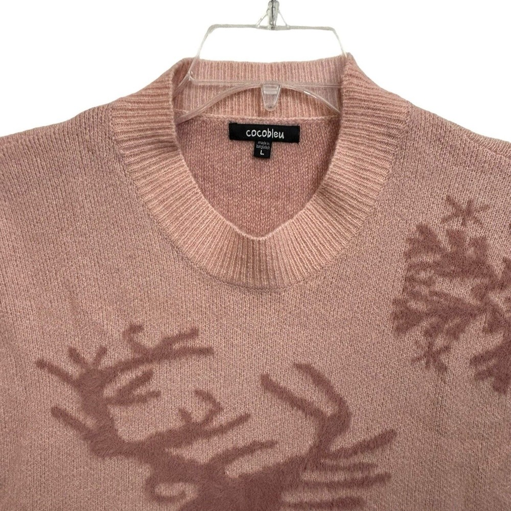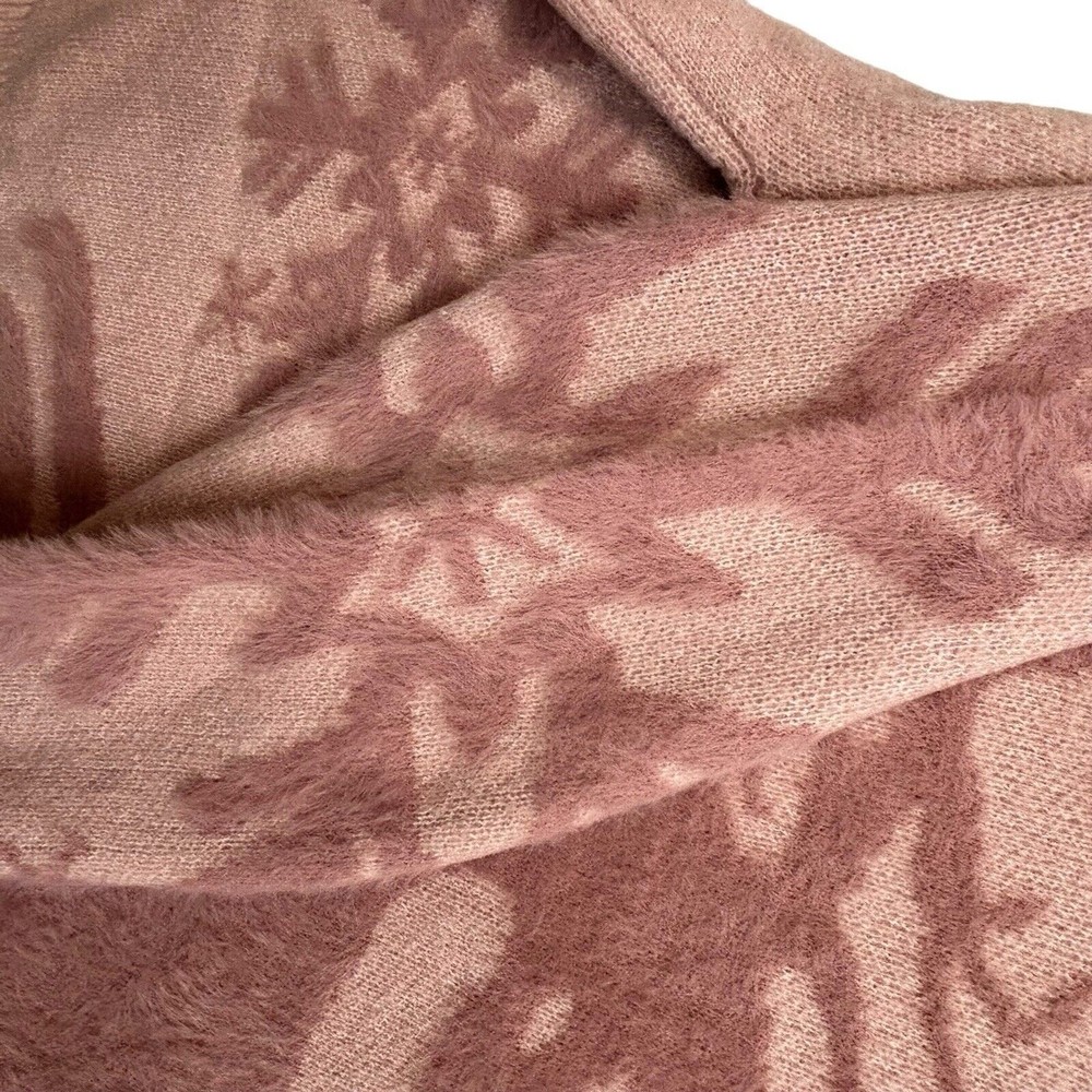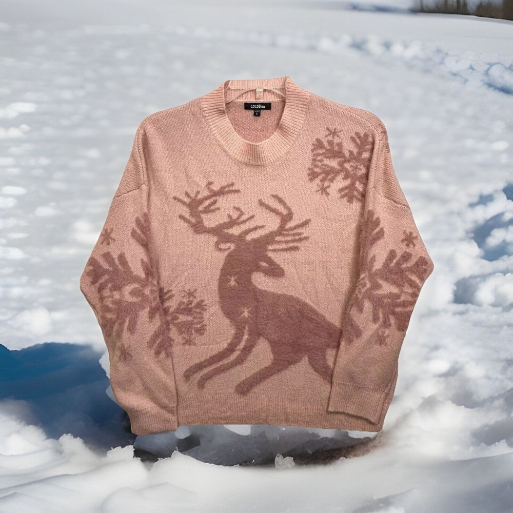 Stay cozy this winter with this lovely pink sweater from COCOBLEU. The pullover style features a crew neckline and long sleeves, perfect for keeping you warm during those chilly days. The sweater is made of a stretchy blend of nylon and acrylic materials, ensuring a comfortable fit for all-day wear. The sweater is adorned with beautiful fuzzy reindeer and snowflake details, adding a festive touch to your winter wardrobe. This sweater is perfect for women who want to stay stylish and comfortable during the cold season. Add this sweater to your collection today! New with tags Size - Small Chest (flat across) ~ 21" Length ~ 23"
