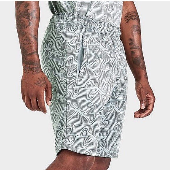 NIKE AIR MAX ALL-OVER PRINT SHORTS GRAY NEW WITH TAGS - MENS - MULTIPLE SIZES 🔥 MSRP $79 DISCOUNTED - $38.98 - FREE SHIPPING! Product Details Size & Fit Regular fit for all-day comfort Knee-length hem Product Features Elasticized waistband with drawcord Side pockets for small-item storage All-over topographical print; Nike Air Max wordmark at left thigh Slight taper in legs Moisture-wicking design draws sweat from the skin 100% polyester Machine wash The Nike Air Max All-Over Print Shorts are imported. Work out or hang out in the Men's Nike Air Max All-Over Print Shorts and experience the soft comfort, two-way stretch and minimalist design you'll want to wear every day.