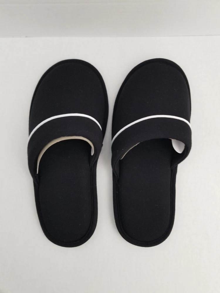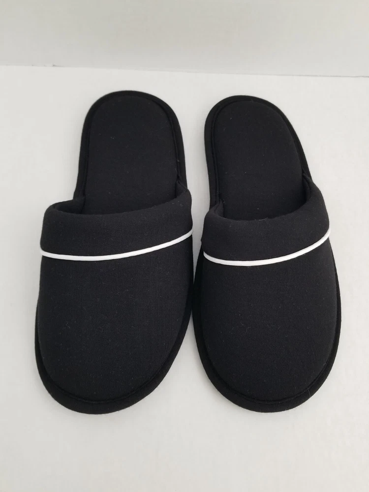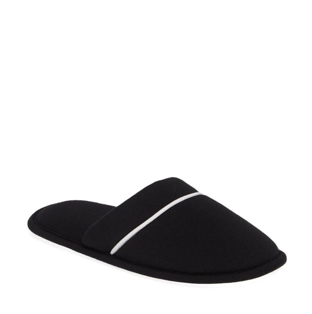 NORDSTROM Black Moonlight Scuff Slippers Slides Size: SMALL (fits 5, 5.5, 6, 6.5) Color: Black with White Stripe Treat your feet to the spa-like plush feel of this cushioned slipper that's perfect out of the shower in the morning or kicking back all day on the weekend This easy-on scuff with a traction sole makes those precarious moonlight strolls to any room without turning on the lights a less-risky adventure. Upper & Lining: 100% Polyester Sole: Thermoplastic Rubber Machine Wash in Cold Water Gentle Cycle NEW without box - as pictured