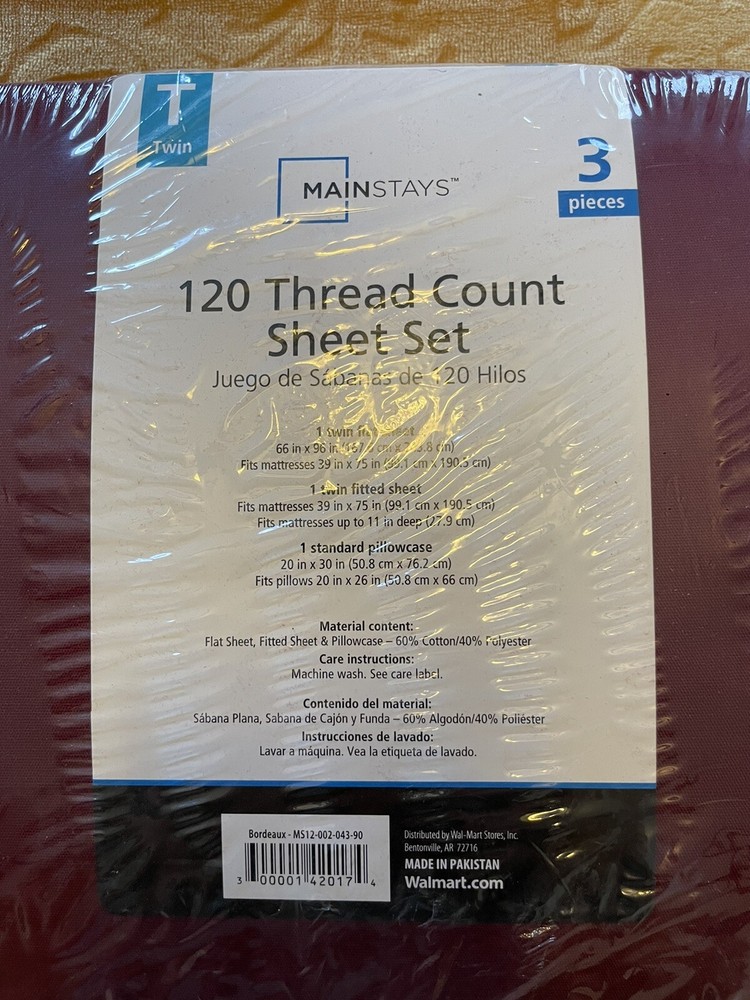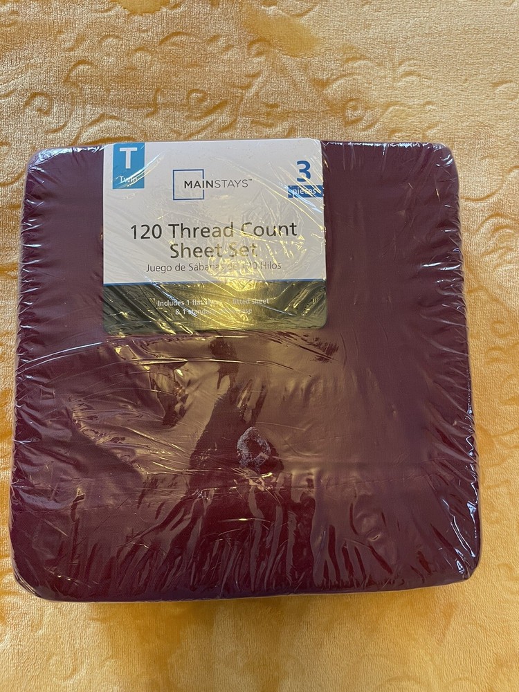This NOS Twin 120 Thread Count Sheet set in BORDEAUX Wine color is a perfect addition to your bedroom. The set includes a fitted sheet, flat sheet, and one pillowcase, all made from a 60% cotton 40% poliester blend. The solid color pattern is perfect for any decor, and the machine washable care instructions make it easy to keep clean. The set is brand new and has never been used, making it a great value for anyone looking for high-quality bedding. This set is perfect for any twin bed and will add a touch of elegance to your bedroom. Don't miss out on this great opportunity to improve your sleep experience! Twin size! Sold as is. No returns. Thank you and enjoy!