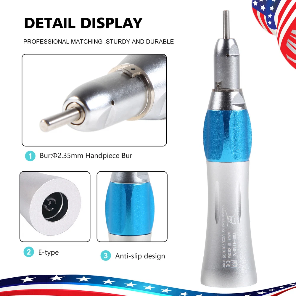 Description Dental Slow Low Speed Handpiece Latch type/Push Button 2/4 Hole E-type This complete kit includes low speed handpiece contra angle model, low speed handpiece straight model and low speed dental air motor. Features For Dental Handpiece: - E-type connector - Latch type/Push Button - Precise technology, Steady, no vibration while revolving, offering a steady operation. - Suitable for any E-type handpiece accords with ISO standard - 135°C Autoclavable, suitable for both steam and chemical autoclave Contra angle handpiece - Low Speed 22,000-27,000 rpm. - The shank of the instrument mounted therein is 2.35 mm - Fastening of the instruments with a turning latch - Autoclavable 135°C - For any lab or E-type motors Straight Nosecone - Working pressure: 0.3MPa - 0.25MPa(Measure meter is installed at the end of air motor to measure the air pressure). - Revolution: about 22000-27000r/min (adjustable between clockwise or anticlockwise) - Noise: ≤68dB - Air consumption: about 56L/min - Ratio: 1:1 - Max speed of contra angle: 25000rpm/min. Air Motor EX-203 - Supply air pressure: 245-392KPa (2.5-4kgf/CM2) - 1:1 Direct Drive - Borden 2 holes/ 4 holes - Max speed 20,000 min-1 Technical data Air-in Pressure(kg/c ㎡ ) Motor Rotation(rpm) Air Wastage:(N1/min) 2.5 22,000 42 3 25,000 51 4 27,000 72 Packing List: - E-type air motor 2-Hole/4-Hole: 1 each - Straight nose cone: 1 each - Contra Angle handpiece: 1 each - English manual: 1 each FDA Statement The sale of this item may be subject to regulation by the U.S. Food and Drug Administration and state and local regulatory agencies. If so, you can bid on this item only if you are an authorized purchaser. If the item is subject to FDA regulation, I will verify your status as an authorized purchaser of this item before shipping of the item. Payment We accept PayPal payment ONLY, it is easy and safe. Payment should be sent within 7 (SEVEN) days of auction closing. All winning bidders whom won our item, please let me know your contact number after you made the full payment , we need this number to make sure you can receive your item in time, and also for emergency contact consideration. Feedback IMPORTANT INFORMATION ON OUR POLICY AND FEEDBACK Please leave me FIVE STAR POSITIVE feedback if you are satisfied with our items. We try to be fair and accurate with all of our product listings and descriptions. Please read each auction, bid, and sale carefully. We will appreciate it if you please email us before leaving negative feedback. If there is a problem, we can work together to resolve it. We strive to always be extremely fair and always try to work with reasonable customers. Negative feedback doesn't go away and should only be left as a last resort! We strive for positive feedback, harmonious relations and even friendships. We will always make every attempt possible to resolve issues if we made a mistake.(It happens). Please do not assume a mistake is intentional. Let us know if our service could be better!! Shipping International Shipping to worldwide. Handling within 24 business hours. Tracking info of your parcel is available. Returns could be accepted within 60 days after receipt of the item. Import duties, taxes and charges are not included in the item price or shipping charges. These charges are the buyer's responsibility.Please check with your country's customs office to determine what these additional costs will be prior to bidding/buying. It usually takes 15-45 business days to arrive by economy international shipping and 7-12 business days by express. The following form is for your reference. Returns Returns could be accepted within 30 days after receipt of the item Terms of Sale: Refund or replacement request is available only the requests within 1 week after parcel received & returning the item as the same condition as received. Please contact us to request a return authorization. Your name, auction number, and reason for return should be included in the email. All items returned must contain all original packaging materials.Please repack the item carefully. Items returned will be tested and a new replacement will be shipped to the buyer immediately when found defective. In the event that a suitable replacement is not available then a refund will be issued. Shipping, handling and insurance fees are non refundable. If the item is found non-defective, the item will be sent back to the buyer at buyer's expense. Items returned without RMA number will be refused and returned to the sender. Buyer is responsible for All Return Postage and Shipping Charges. Buyer is responsible for additional shipping costs for items that are returned refused and / or undeliverable. We do not accept any returns without an authorization number on the box or label it is being returned. Contact us We will reply all messages within 24 business hours and we are able to give you a quick response during the duty time. If we are off duty, please kindly be patient and give us a little more time, not just leave the neutral or negative feedback without communication. Every problem will be solved ASAP if you contact us! Copyright?Dreamland Dental Store,All rights reserved. FDA for Curing Light: 510(K) Number: K192233 Regulation Number: 21 CFR 872.6070 Product Code: EBZ FDA for Handpiece: 510(K) Number: K181691 Regulation Number: 872.4200 Classification Product Code: EFB Subsequent Product Code: EGS FDA for Scaler: 510(K) Number: K163414 Regulation Number: 872.4850 Product Code: ELC FDA for Curing Light: 510(K) Number: K192233 Regulation Number: 21 CFR 872.6070 Product Code: EBZ FDA for Handpiece: 510(K) Number: K181691 Regulation Number: 872.4200 Classification Product Code: EFB Subsequent Product Code: EGS FDA for Scaler: 510(K) Number: K163414 Regulation Number: 872.4850 Product Code: ELC