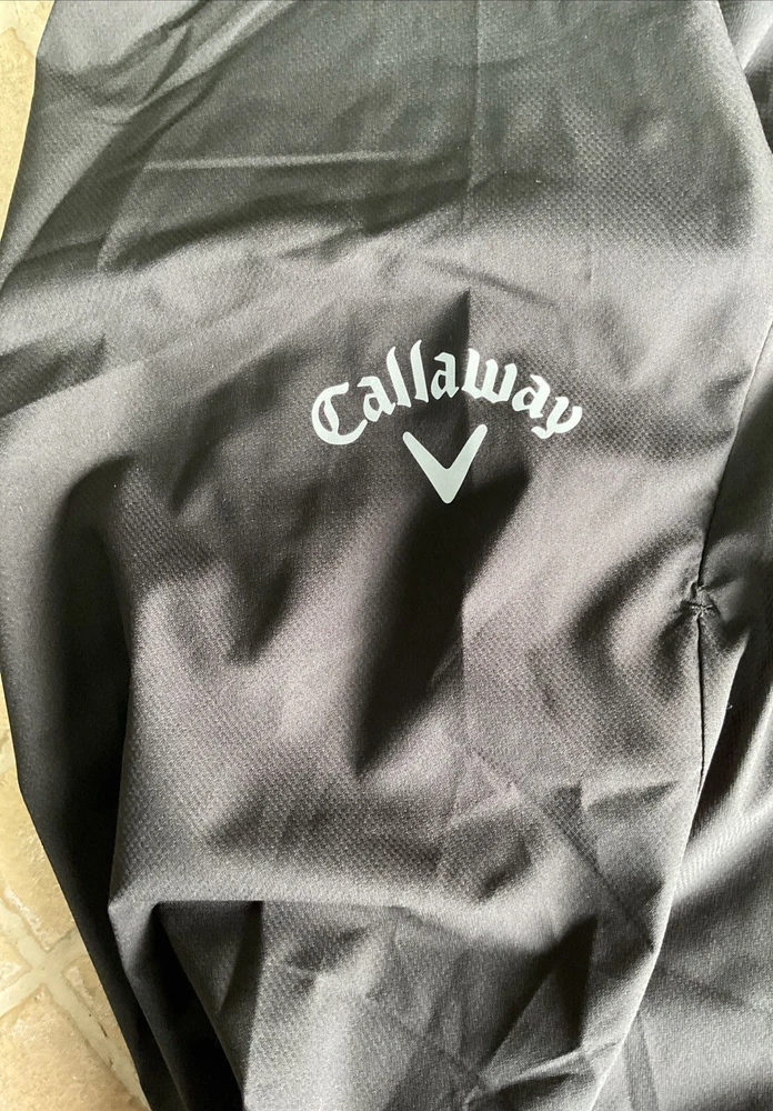 For Sale: Brand New Callaway Men’s Long Sleeve Full-Zip Black Wind Jacket in a Size XL. Original MSRP: $98.00! Face the elements confidently in this wind- and water-resistant Weather Series golf windbreaker from Callaway. It is designed to absorb moisture inside and repel moisture outside. The full zip golf jacket features an adjustable hem and cuffs for customized comfort, while a high mock collar and hand pockets offer warmth between outside activities. For more details on the condition and wear, kindly refer to the provided photos. We always recommend enlarging the photos to see the condition of the item better. Please be aware that this item is sold as is, and no refunds will be offered unless approved. *Stock picture shows style and fit. Remaining photos of actual item for sale.* Please reach us if you have any questions! FAST SHIPPING! LOCAL PICKUP AVAILABLE!