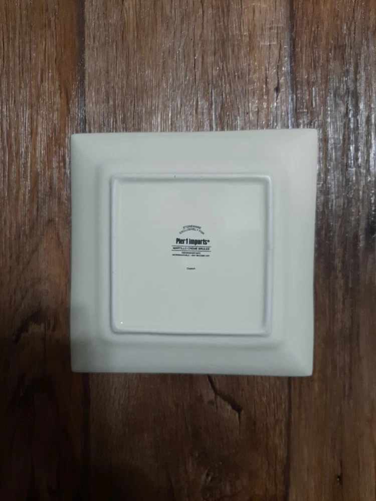 Pier 1 Imports Martillo Creme Broulee' Square Salad Plate New without tags Distressed 7.75" Square Beautiful! Ivory color Contact me so we can work out a deal if you want more than 1 plate.
