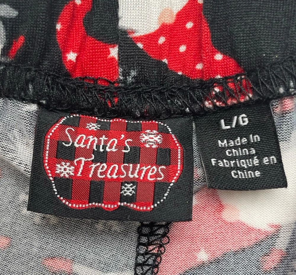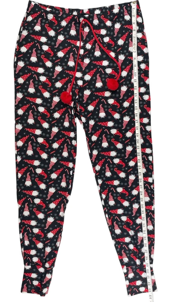 NWOT Santas Treasures Pajama Pants Womens L Black Red Winter Gnomes New without tags! Super Cute!!! Measurements: 32" Waist. 11" Rise. 31" Inseam. 43" Top of Waist to Bottom of Hem. Please view photos as part of description. Sold as pictured. Thank you for shopping Lambnlinen!