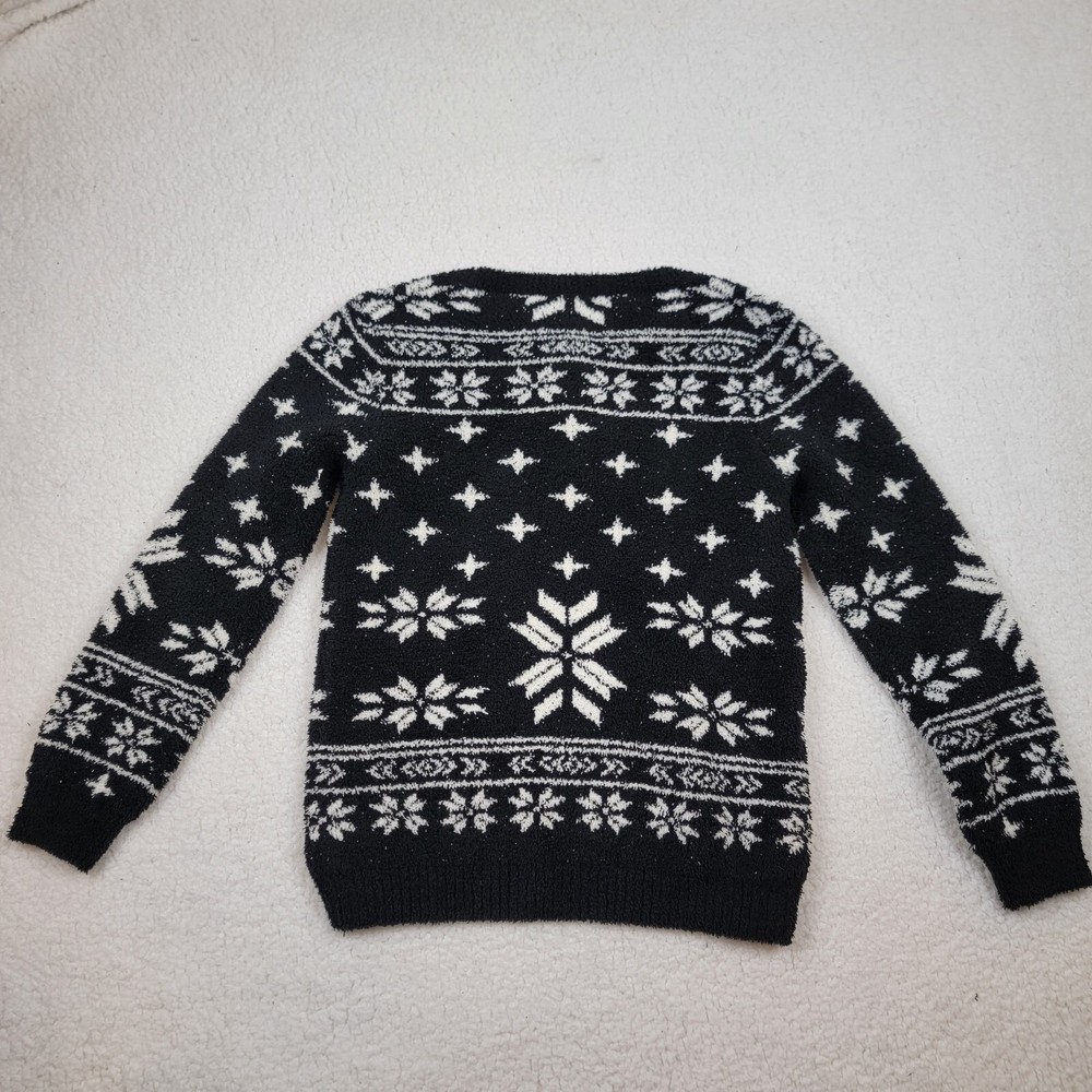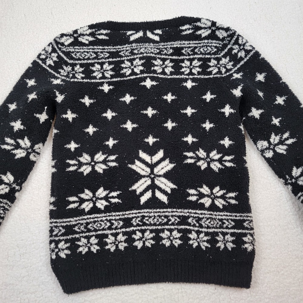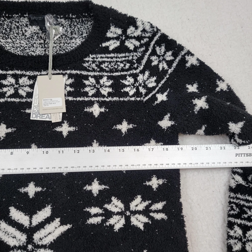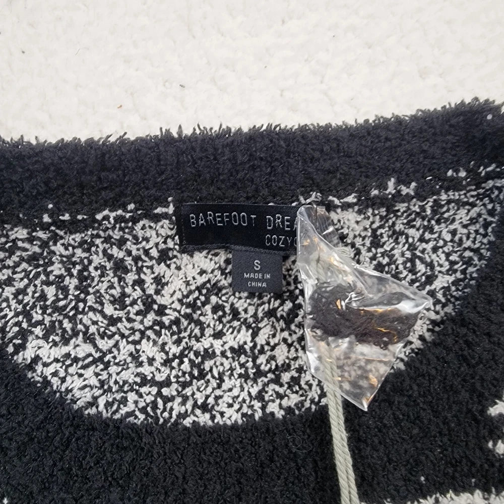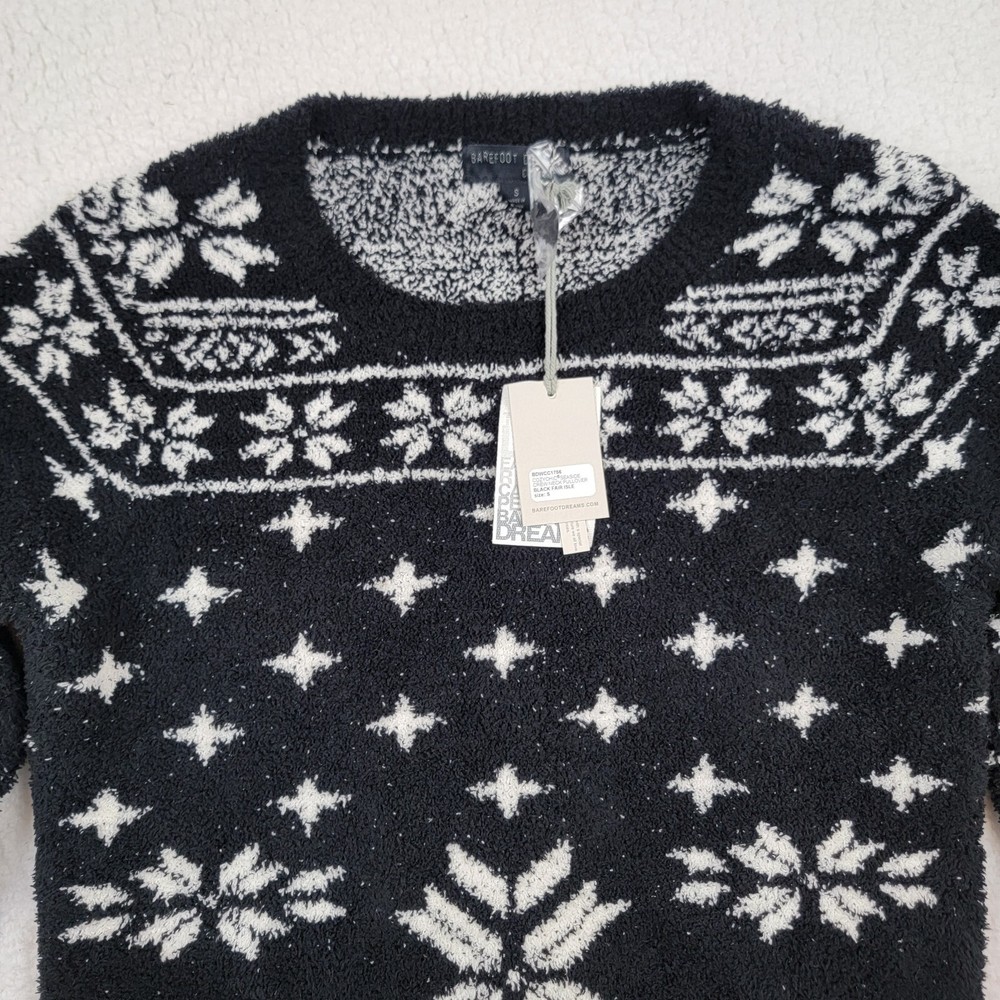 NWT Barefoot Dreams Sweater Cozy Chic Soft Christmas Black & White Fair Isle Snowflake Size S...